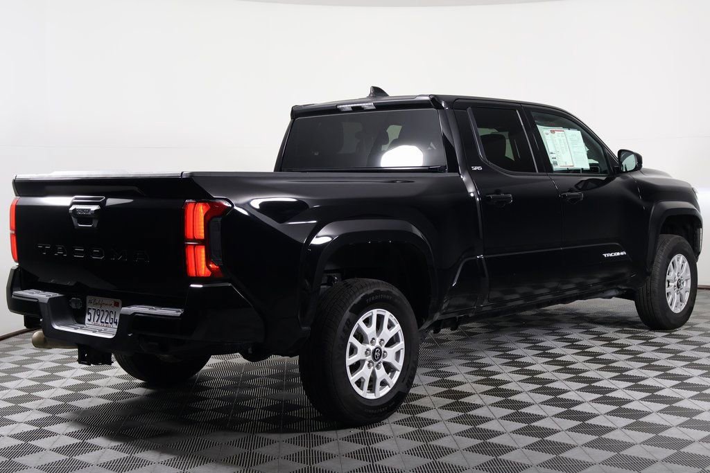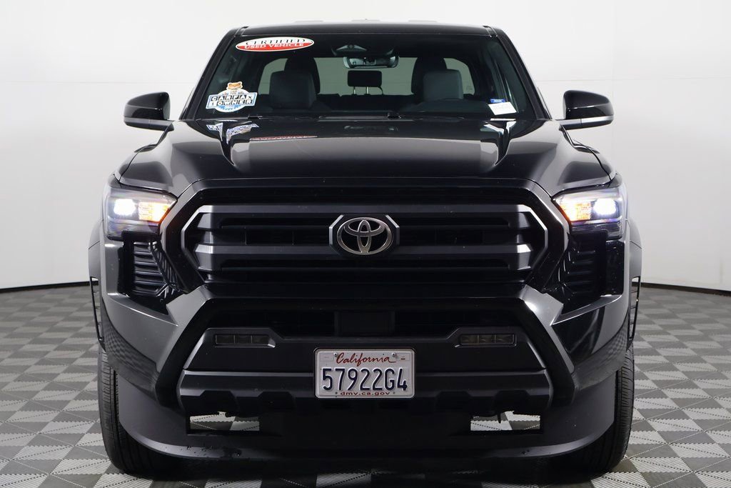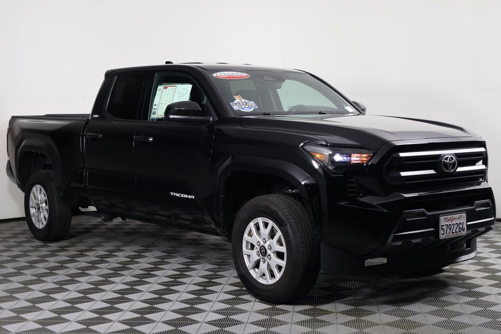 Certified. Black 2025 Toyota Tacoma SR5 RWD 8-Speed Automatic 2.4L 4-Cylinder. Recent Arrival! 21/26 City/Highway MPG. Total SRP (aka TSRP) is the Total Suggested Retail Price and DPH references the Delivery Process and Handling fee (if applicable). Neither the dealership nor the website provider is responsible for misprints on prices or equipment. It is the customer’s sole responsibility to verify the accuracy of the prices with the dealer, including the pricing for all added accessories. Advertised service loaners may not be immediately available for demonstration or delivery. See dealer to schedule an appointment. All advertised prices exclude government fees and taxes, finance charges, dealer document processing charge of $85, electronic filing charge and any emission testing charge and Dealer Installed Accessories. All vehicles subject to prior sale. All prices, specifications, and availability subject to change without notice. Certain vehicles listed may be in transit and not available. Images shown are for informational purposes, and may not represent the actual vehicle, or available configurable options. Dealer claims no responsibility for any inaccuracies contained herein. Trade in vehicles subject to visual inspection and confirmation of vehicle history, mileage, and equipment. Trade-in value estimates exclude any reconditioning costs and previous damage. Any amount you owe which is more than the amount allowed on your trade-in will be added to the new amount financed subject to credit approval. All advertised prices expire at midnight on the day of posting. For In-Transit inventory any date of arrival is estimated. Dealer reserves the right to change the date due to conditions beyond our control. Please contact dealer for delivery details.