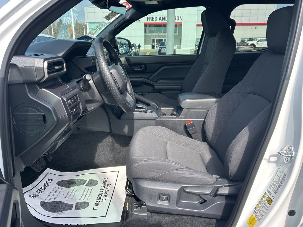 Recent Arrival! Carfax One-Owner. 2025 Toyota Tacoma SR5 Ice 3.583 Axle Ratio, 4-Wheel Disc Brakes, 6 Speakers, ABS brakes, Air Conditioning, Alloy wheels, AM/FM radio: SiriusXM, Anti-whiplash front head restraints, Apple CarPlay/Android Auto, Auto High-beam Headlights, Auto-dimming Rear-View mirror, Brake assist, Bumpers: body-color, Driver door bin, Dual front impact airbags, Dual front side impact airbags, Electronic Stability Control, Emergency communication system: Safety Connect (1-year trial), Exterior Parking Camera Rear, Fabric Seat Trim, Four wheel independent suspension, Front anti-roll bar, Front Bucket Seats, Front Center Armrest, Front fog lights, Front reading lights, Fully automatic headlights, Heated door mirrors, Illuminated entry, Knee airbag, Low tire pressure warning, Occupant sensing airbag, Outside temperature display, Overhead airbag, Overhead console, Panic alarm, Passenger door bin, Power door mirrors, Power steering, Power windows, Radio: 8" Toyota Audio Multimedia, Rear step bumper, Rear window defroster, Remote keyless entry, Speed control, Speed-sensing steering, Split folding rear seat, Steering wheel mounted audio controls, Tachometer, Telescoping steering wheel, Tilt steering wheel, Traction control, Trip computer, Variably intermittent wipers, Wheels: 17" Styled Alloy. 4D Double Cab 4WD 8-Speed Automatic 2.4L 4-Cylinder 19/24 City/Highway MPG. Please note, the information may not be accurate as we have not put the vehicle through service yet.