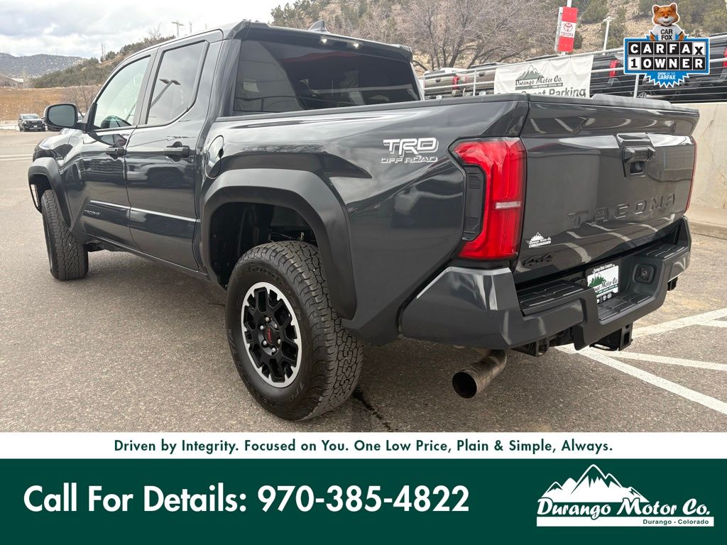 Certified! Introducing the 2025 Toyota Tacoma TRD Off-Road Double Cab, available at Durango Motor Company. Finished in Underground with a Boulder/Black fabric interior accented by Smoke Silver, this redesigned Tacoma brings modern styling together with proven off-road capability. Powered by the 2.4L turbocharged i-FORCE 4-cylinder engine and paired with an 8-speed automatic transmission, it delivers responsive performance and confident control. The TRD Off-Road package and part-time 4WD system enhance traction and durability when conditions get tough, while the Double Cab configuration offers versatile space for passengers and gear. Inside, you'll find advanced technology including a 14-inch Toyota Audio Multimedia display, Bluetooth connectivity, and Toyota Safety Sense, creating a balanced driving experience that's both rugged and refined. At Durango Motor Company in Durango, Colorado, our non-commissioned sales team is here to help you find the right vehicle at the right price. If you'd like more details, additional photos, or a personalized walk-around video, our team is happy to assist. Recent Arrival! Odometer is 1446 miles below market average!