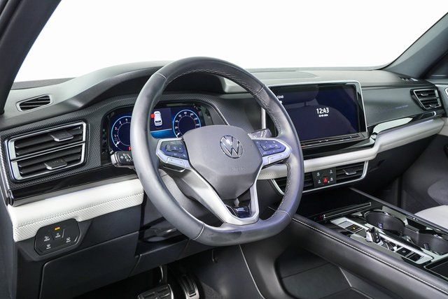 Commanding in presence and refined in performance, the 2025 Volkswagen Atlas Cross Sport SEL Premium R-Line AWD delivers an exceptional blend of sporty design, cutting-edge technology, and all-weather confidence. Its sculpted exterior features bold R-Line styling, distinctive 21-inch alloy wheels, and a sleek, coupe-like profile that elevates its curb appeal. Inside, the cabin exudes premium sophistication with quilted leather seating surfaces, ambient lighting, and a panoramic sunroof that enhances the spacious feel. A 12-inch touchscreen display anchors the advanced infotainment system, offering intuitive access to navigation, entertainment, and smartphone integration. Power comes from a turbocharged 2.0L engine delivering 269 horsepower and 273 lb-ft of torque, paired with 4MOTION all-wheel drive for confident traction in any condition. With standard features like a hands-free power liftgate, heated and ventilated front seats, a premium Fender audio system, and IQ.DRIVE driver-assistance technologies, the Atlas Cross Sport SEL Premium R-Line AWD is designed to impress at every level. Whether you're commuting in style or embarking on a weekend adventure, this SUV makes every drive memorable.