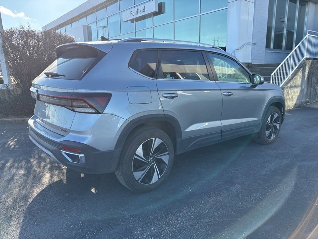 CARFAX One-Owner. Certified. Pyrite Silver Metallic 2025 Volkswagen Taos 1.5T SE 1.5L I4 Turbocharged DOHC 16V LEV3-SULEV30 174hp 8-Speed Automatic with Tiptronic. Bluetooth, Rear Back Up Camera, Heated Seats, AWD All Wheel Drive, Taos 1.5T SE, AWD, Panoramic Sunroof Package. Volkswagen Certified Pre-Owned Details: Warranty Deductible: $50, 100+ Point Inspection, Model Year 2020 and Newer Vehicles: 2-Year or 24,000-Mile (whichever occurs first) Comprehensive Limited Warranty. Model Year 2019 Vehicles: 1-Year or 12,000-Mile (whichever comes first) Comprehensive Limited Warranty. Electric Vehicles Model Year 2019 & Newer: 3-Year or 36,000-Mile (whichever comes first) Comprehensive Limited Warranty. 2 Years of 24-Hour Roadside Assistance, Three Months of SiriusXM Platinum Plan Trial Subscription. Roadside Assistance. Vehicle History.