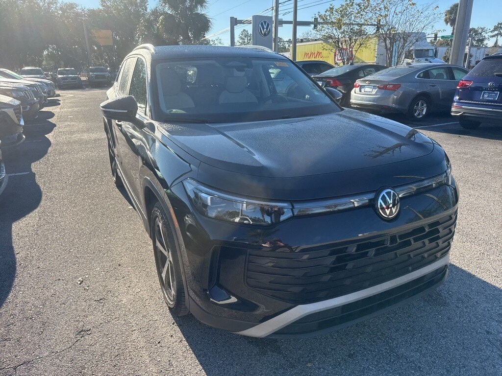 Recent Arrival! Carfax One-Owner. Clean Carfax. 2025 Volkswagen Tiguan 2.0T SE Certified Pre-Owned, Clean Carfax, no accidents, one owner, Tiguan 2.0T SE, Deep Black Pearl, Crystal Gray with Perforated V-Tex Leatherette Seating Surfaces, 7 Speakers, Air Conditioning, AM/FM radio: SiriusXM with 360L, Auto High-beam Headlights, Automatic temperature control, Brake assist, Bumpers: body-color, Delay-off headlights, Driver vanity mirror, Dual front impact airbags, Dual front side impact airbags, Electronic Stability Control, Emergency communication system: VW Car-Net Safe & Secure 5-year, Exterior Parking Camera Rear, Front anti-roll bar, Front Bucket Seats, Front Center Armrest, Front dual zone A/C, Front reading lights, Fully automatic headlights, Heated door mirrors, Heated Front Seats, Heated front seats, Illuminated entry, Knee airbag, Leather Shift Knob, Low tire pressure warning, Occupant sensing airbag, Outside temperature display, Overhead airbag, Overhead console, Passenger vanity mirror, Perforated V-Tex Leatherette Seating Surfaces, Power door mirrors, Power driver seat, Power steering, Power windows, Radio data system, Radio: MIB4 Composition Media Touchscreen AM/FM, Rain sensing wipers, Rear window wiper and Rear window wiper.