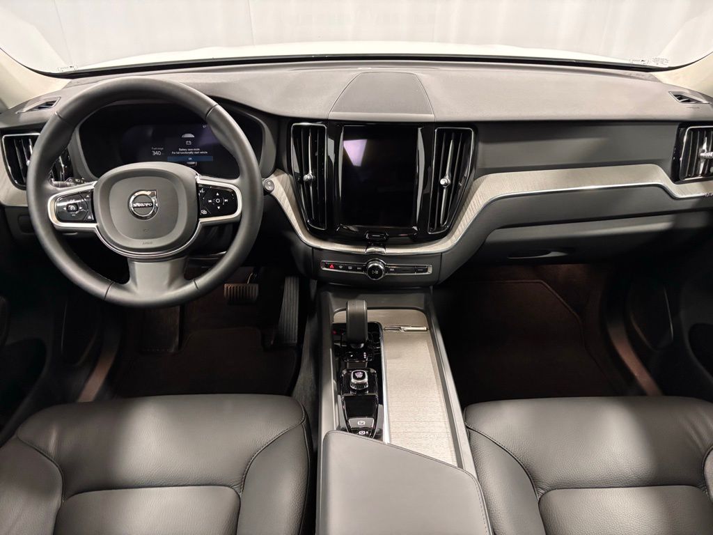 Certified by Volvo 2025 Volvo XC60 B5 Plus SUV. This luxury SUV features a quiet and comfortable interior with seating for five, a mild hybrid powertrain, and a full suite of advanced safety and convenience features. The vehicle is finished in Crystal White with a Charcoal interior and offers excellent fuel economy for its class.
