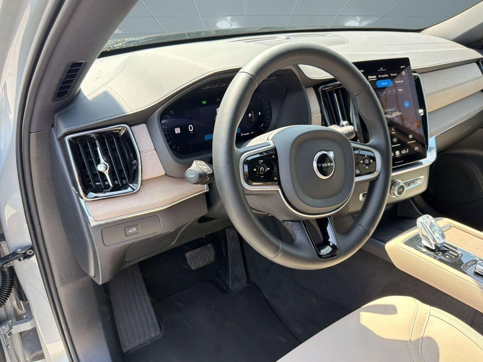 Certified by Volvo 2025.5 Volvo XC90 B5 AWD Plus 7 Passenger in Vapour Grey Metallic with Cardamom Premium Interior. Additionally equipped with Harman Kardon Premium Sound System. Original in service date - March 31st, 2025.
