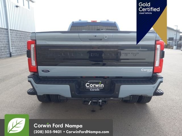 Our diesel-driven Certified, Accident Free 2026 Ford F-450 Platinum Crew Cab 4X4 Dually sets supremely high standards for strength and luxury in Azure Gray Metallic Tri-Coat! Motivated by a TurboCharged 6.7 Liter PowerStroke Diesel V8 generating 475hp and 1050lb-ft of torque for a 10 Speed Automatic transmission. This Four Wheel Drive is a fearless hard worker with a Pro Power Onboard generator to help you further. Exterior excellence gets your attention with LED lighting, including LED roof lamps, power running boards, a power tailgate, PowerScope trailer mirrors, a sunroof, a durable bedliner, and premium alloy wheels. Crafted details make the difference in our Platinum cabin, which boasts heated/ventilated leather power front and heated rear seats, a heated leather power steering wheel, dual-zone automatic climate control, a power rear window, and power-adjustable pedals. Infotainment is at your fingertips with the 12-inch touchscreen, a 12-inch driver display, connected navigation, WiFi compatibility, Apple CarPlay®, Android Auto®, Bluetooth®, wireless charging, and a B&O Unleashed sound system. Ford helps you work smarter and safer by providing front/rear automatic braking, trailer-compatible blind-spot monitoring, a head-up display, front/rear automatic braking, trailer-compatible blind-spot monitoring, a 360-degree camera system, lane-keeping assistance, trailer reverse guidance, and more. You're good to go to work and play in the F-450 Platinum! Save this Page and Call for Availability. We Know You Will Enjoy Your Test Drive Towards Ownership! Corwin Ford Nampa! Friendly service and aggressive pricing is why we are your new and pre-owned vehicle dealer serving, Nampa, Boise, Meridian, Caldwell, Kuna, Eagle, Emmett, Idaho City, Wilder, New Plymouth, Star, Middleton, Weiser, Payette, Horseshoe Bend, Mountain Home, Idaho, and surrounding states.