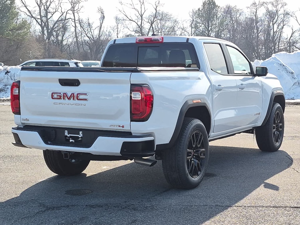 - Trailer hitch GMC 4WD AT4 with Summit White exterior and Jet Black/Timber interior features a 4 cylinder engine with 310 HP at 5600 RPM.