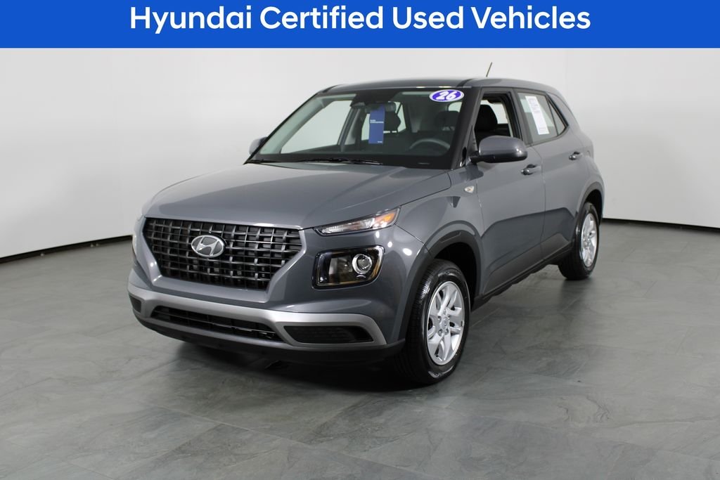 Discover the perfect urban companion in the 2026 Hyundai Venue SE. This compact SUV offers a winning combination of style, versatility, and advanced technology, making it an exceptional choice for the modern driver. With its sleek Gray exterior and well-appointed interior, the Venue SE exudes a refined and sophisticated presence. Powered by a reliable I4 engine paired with a CVT transmission and front-wheel drive, this vehicle delivers an impressive 29 MPG in the city and 32 MPG on the highway, ensuring exceptional fuel efficiency for your daily commute or weekend adventures. The Venue SE's comprehensive list of features is designed to enhance your driving experience. Enjoy the convenience of Apple CarPlay and Android Auto, the safety of a Rear View Back-Up Camera, and the connectivity of Bluetooth Hands-Free Calling. The Venue SE also boasts a host of advanced safety technologies, including ABS Brakes, Dual Front Impact Airbags, Dual Front Side Impact Airbags, and Electronic Stability Control, providing you and your loved ones with peace of mind on the road. As a Hyundai Certified Pre-Owned vehicle, this 2026 Venue SE has undergone a rigorous 173+ Point Inspection, ensuring it meets the highest standards of quality and reliability. You'll also enjoy the benefits of a Limited Warranty, Roadside Assistance, and a Vehicle History report, giving you the confidence to make an informed purchase decision. Don't miss your chance to experience the exceptional value and versatility of the 2026 Hyundai Venue SE. Visit our showroom today and let our knowledgeable sales team guide you through this outstanding pre-owned offering.