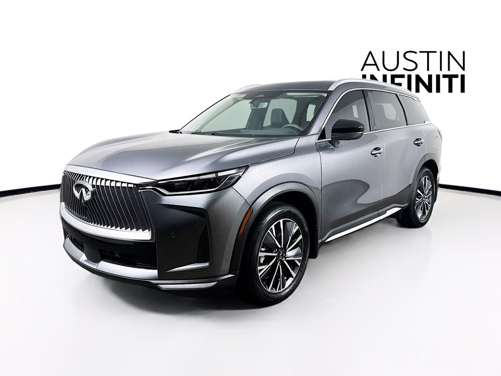 Clean CARFAX. Graphite Shadow 2026 INFINITI QX60 LUXE AWD 2.0L I4 PDI Turbocharged DOHC 16V 268hp Full Safety Inspection Check. The 2026 INFINITI QX60 Luxe AWD features a 2.0L VC-Turbo 4-cylinder engine (268 hp), paired with a 9-speed automatic transmission and Intelligent All-Wheel Drive, offering 22 City/27 Hwy MPG and a 6,000 lb towing capacity, with key tech including Google built-in, ProPILOT Assist, a 12.3" digital display, panoramic moonroof, leatherette seating, and standard 20" wheels, enhancing its premium family SUV status. This vehicle is equipped with our Austin INFINITI Protection Package $999 -Battery4Life: Ensuring you never have to worry about unexpected battery issues (Gas Vehicles Only) OR -PDS Premier Defense: 1-Year Exterior Paint Protection Preserving the finish with an extra layer of durability against the elements! Recent Arrival! 22/27 City/Highway MPG