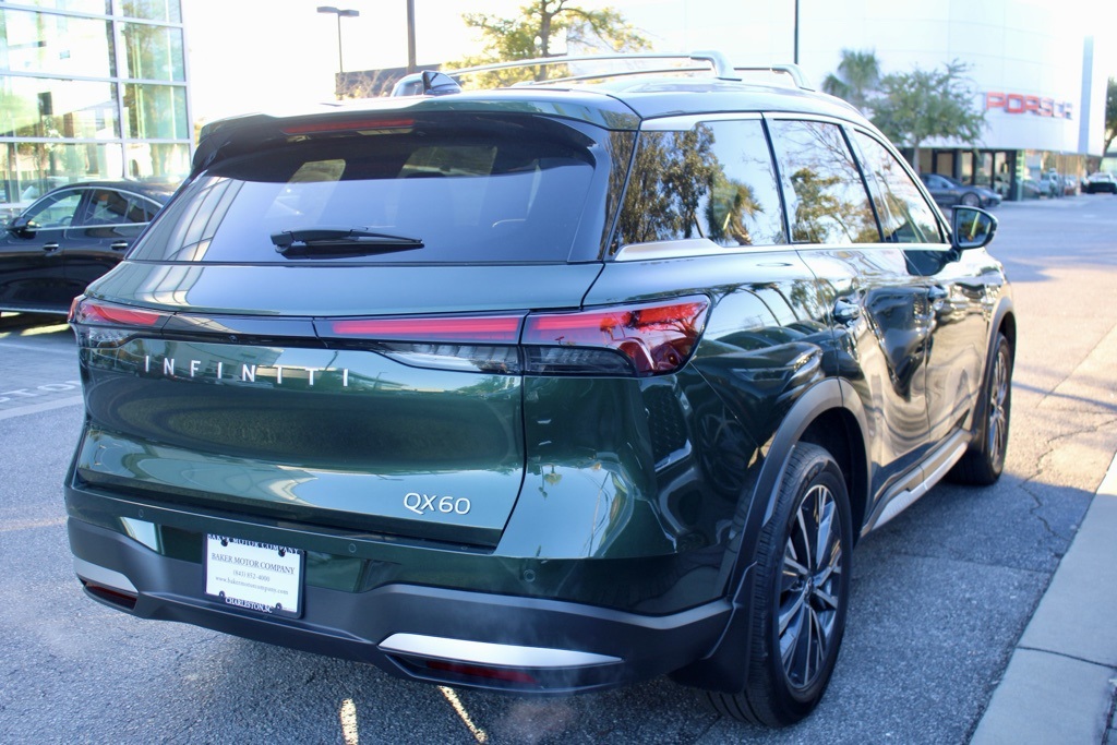 Certified, retired loaner car. Offerings for special lease programs, call for tailored pricing. Deep Emerald 2026 INFINITI QX60 LUXE. Clean CARFAX.