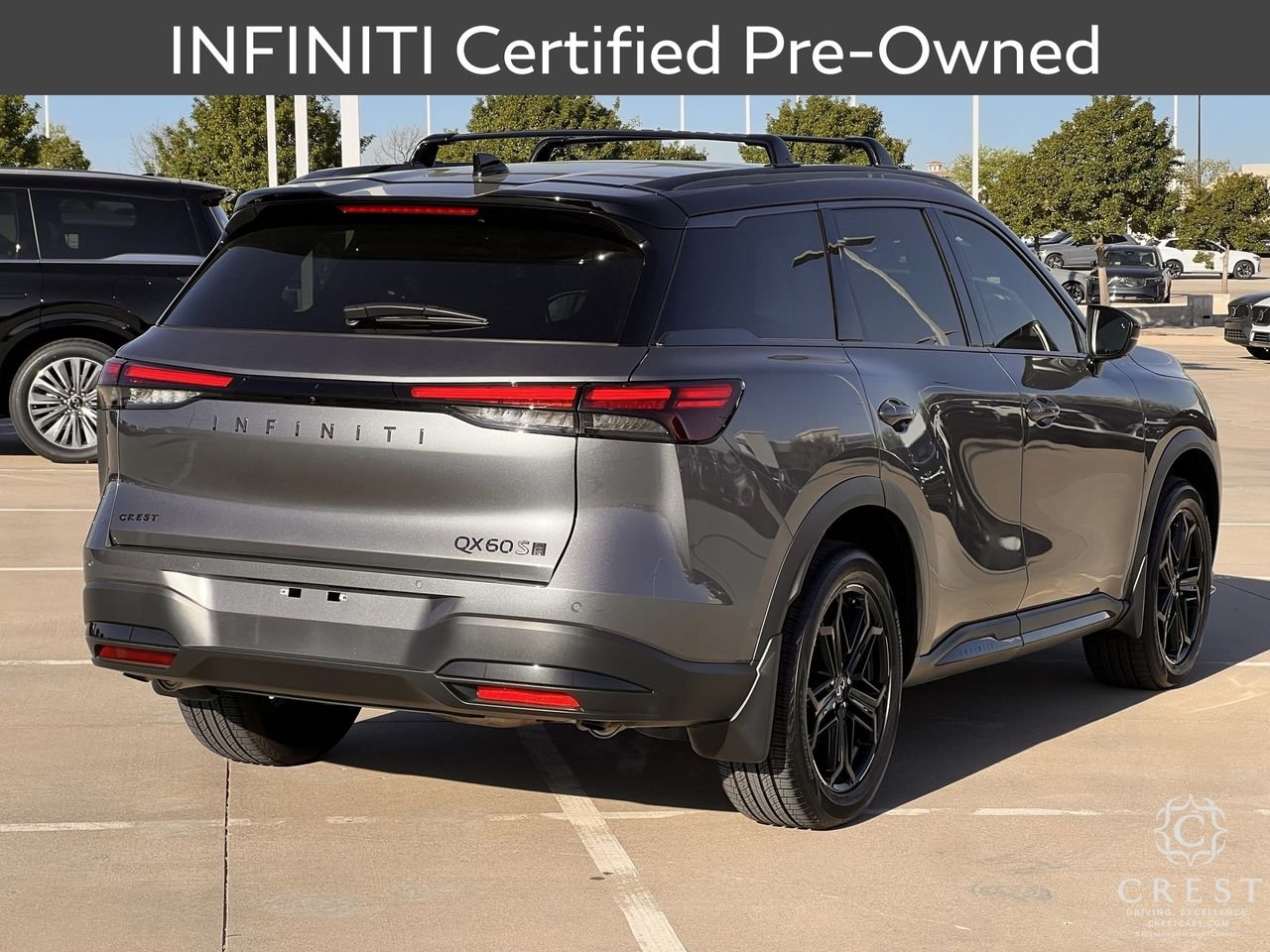 Certified. INFINITI Details: * Eligible on Non-INFINITI Vehicles Up to 10 Years Old From New Warranty Start Date and Fewer than 100,000 Miles. 1 Prepaid Service Visit Included Within the First Year of Ownership (excludes EVs). 6 Months/6,000 Mile Limited Powertrain Warranty, $100 Deductible, 84 Point Inspection, Roadside Assistance, Select Makes/Models. 2026 INFINITI QX60 Sport 22/27 City/Highway MPG Thank you for viewing our vehicle. You can see more Premium Pre-Owned vehicles like this one at CrestCars.com. Crest Automotive Group proudly serving the following communities: Plano, Mckinney, Allen, Richardson, Dallas, Ft. Worth, Grapevine, Bedford, Hurst, Mesquite, Frisco, Lewisville, Little Elm, Arlington, Coppell, Grand Prarie, Euless, Colleyville, Wylie, Lavon, Prosper, Denton, Murphey, Anna, Celina, Sherman, Southlake, Flowermound, DFW, Addison, Irving, Las Colinas, Garland, Aubrey, Oak Point, Corinth, University Park, Highland Park, Carrolton, Richardson, Melissa, Azle, Lake Dallas, Krum, Roanoke, Keller, Trophy Club, Farmers Branch. Haslet, Bedfprd. Euless, Hurst, North Richland Hills, Saginaw, Justin, Benbroook, White Settlement, Hudson Oaks, Weatherford, Crowley, Watauga, Cedar Hill, Desoto, Duncanville, Midlothian, Waxahachie, Mansfield, Red Oak, Lancaster, Ennis, Palmer, Balch Springs, Mesquite, Cleburne, Alvarado, Seagoville, Combine, Terrell, Rockwall, Sachase, Allen, The Colony, Pilot Point, Gainsville, Whitesboro, North Texas, Durant, Ardmore, Bridgeport, Decatur, Paris.