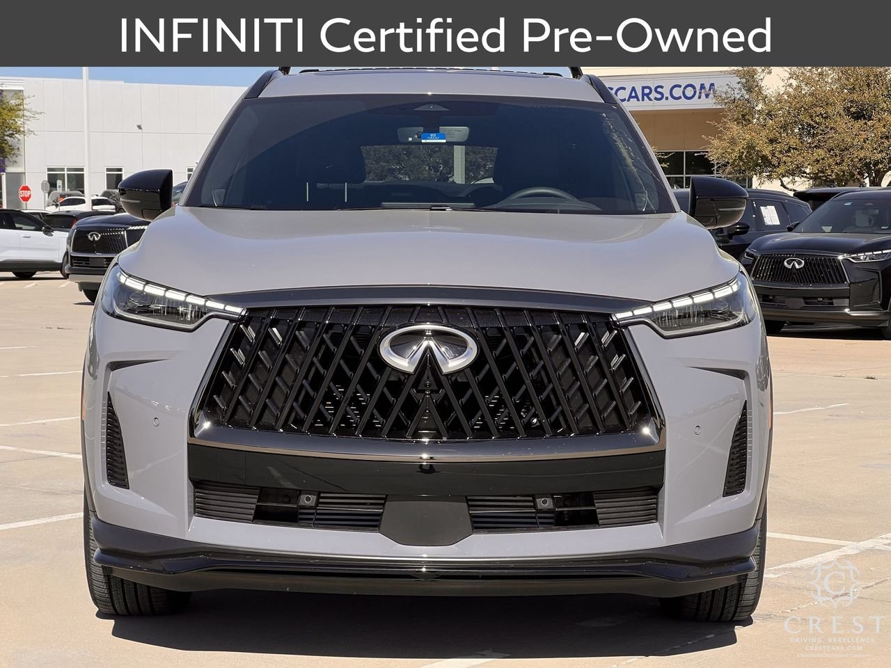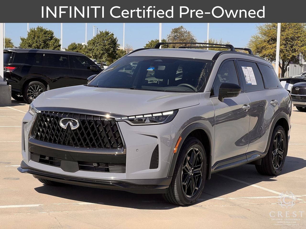 Certified. INFINITI Details: * Eligible on Non-INFINITI Vehicles Up to 10 Years Old From New Warranty Start Date and Fewer than 100,000 Miles. 1 Prepaid Service Visit Included Within the First Year of Ownership (excludes EVs). 6 Months/6,000 Mile Limited Powertrain Warranty, $100 Deductible, 84 Point Inspection, Roadside Assistance, Select Makes/Models. 2026 INFINITI QX60 Sport 22/27 City/Highway MPG Thank you for viewing our vehicle. You can see more Premium Pre-Owned vehicles like this one at CrestCars.com. Crest Automotive Group proudly serving the following communities: Plano, Mckinney, Allen, Richardson, Dallas, Ft. Worth, Grapevine, Bedford, Hurst, Mesquite, Frisco, Lewisville, Little Elm, Arlington, Coppell, Grand Prarie, Euless, Colleyville, Wylie, Lavon, Prosper, Denton, Murphey, Anna, Celina, Sherman, Southlake, Flowermound, DFW, Addison, Irving, Las Colinas, Garland, Aubrey, Oak Point, Corinth, University Park, Highland Park, Carrolton, Richardson, Melissa, Azle, Lake Dallas, Krum, Roanoke, Keller, Trophy Club, Farmers Branch. Haslet, Bedfprd. Euless, Hurst, North Richland Hills, Saginaw, Justin, Benbroook, White Settlement, Hudson Oaks, Weatherford, Crowley, Watauga, Cedar Hill, Desoto, Duncanville, Midlothian, Waxahachie, Mansfield, Red Oak, Lancaster, Ennis, Palmer, Balch Springs, Mesquite, Cleburne, Alvarado, Seagoville, Combine, Terrell, Rockwall, Sachase, Allen, The Colony, Pilot Point, Gainsville, Whitesboro.