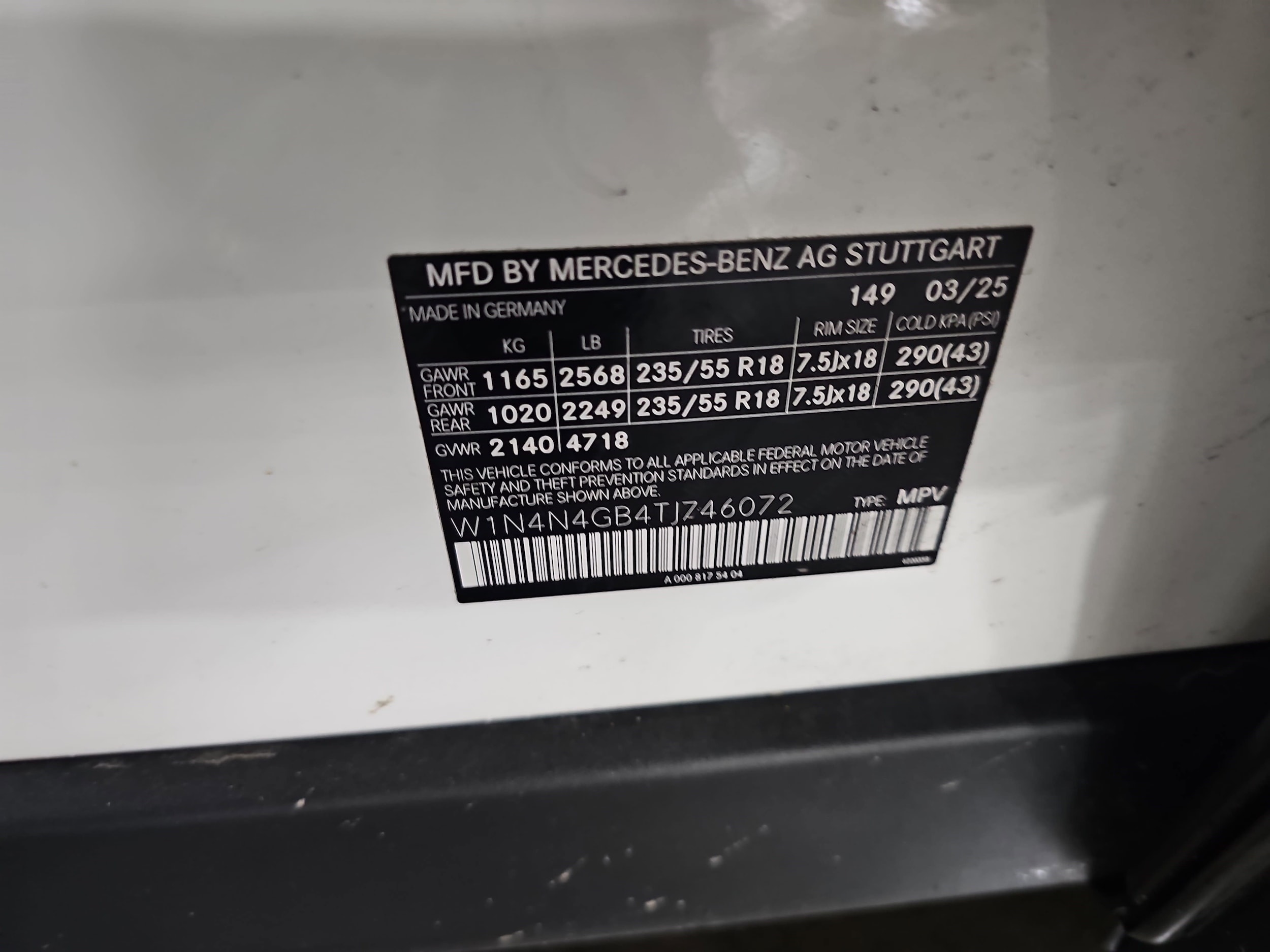 VIN: W1N4N4GB4TJ746072