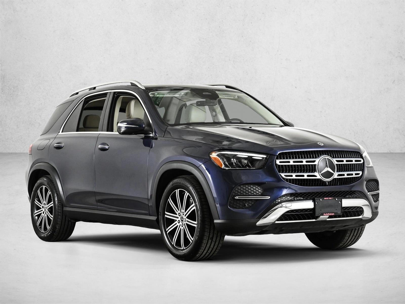MB Certified 2026 GLE350 w4 X-loaner in Twilight Blue on Macchiato Beige / Black MB-Tex. All-wheel drive, turbocharged engine, hard to find 3rd row seat package, Warmth and Comfort Package, Exclusive Trim with Burmester Surround Sound System & Heated & Ventilated Front Seats, Premium package, Panorama Sunroof, Heated Steering Wheel, 20 Multi-spoke wheels, Heated Rear Seats, Natural Grain Grey Oak Wood Trim, Winter package, MBUX Navigation Premium, and more!