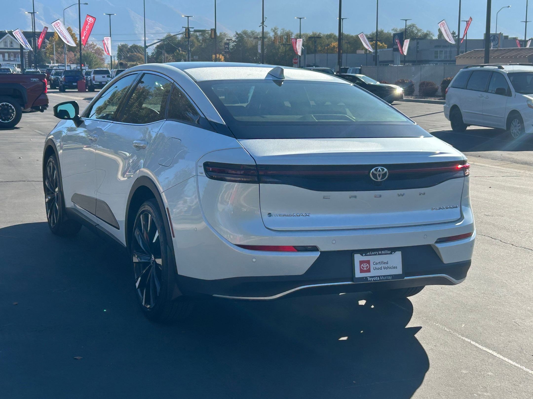 New Price! Clean Carfax. Oxygen White 2026 Toyota Crown Platinum AWD 6-Speed Automatic 2.4L 4-Cylinder DOHC Fresh trade, complete service and inspection just done, super clean, clean Carfax, $57,086 was factory SRP, wow!, year end sales event special! Larry H Miller Toyota in Murray has been helping people with their vehicle purchase for over 40 years. Odometer is 2501 miles below market average! 29/32 City/Highway MPG. Thank you for choosing Larry Miller Toyota in Murray Utah for your next vehicle purchase. We have access to thousands of vehicles. For further questions or inquiries about this vehicle please call 1-801-264-3800 or come see us at 5650 South State Street in Murray Utah.