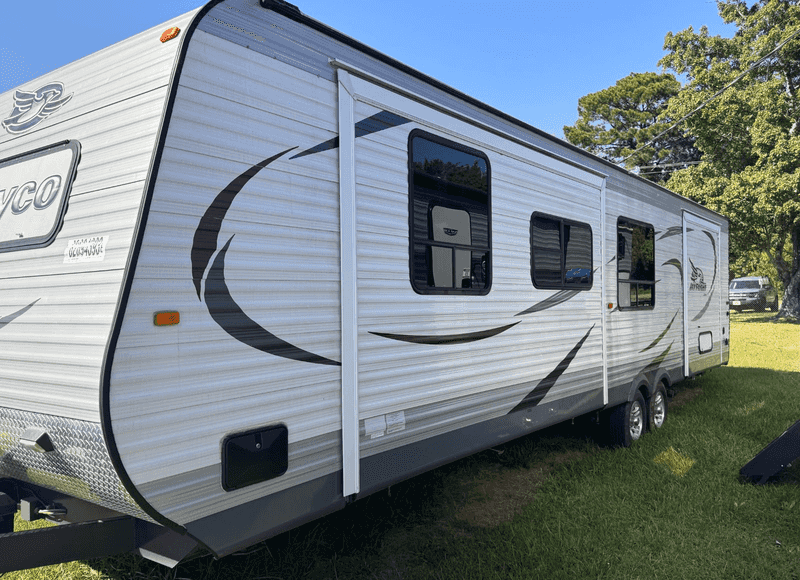 2021 Jayco Jay Flight 33RBTS is a spacious travel trailer designed for larger families, measuring 37.83 feet in length and weighing 8,750 lbs. It features three slideouts for enhanced living space. The interior showcases beautiful wood finishes, creating a warm and inviting atmosphere. It includes a full kitchen with a refrigerator and an oven, along with a cozy living area equipped with foldable window curtains, sofas, chairs, and a dining table, as well as a TV for entertainment. Additionally, there's a wood stove for those cooler nights. The bathroom is equipped with a porcelain toilet and shower. With a fresh water capacity of 80 gallons and a gray water capacity of 71.5 gallons, this trailer is ideal for extended trips. It also features a power-retractable awning and essential safety features like smoke and carbon monoxide detectors. Importantly, the weight of cargo should never exceed 2,013 lbs (914 kg). Asking only $18,950 cash or In-house financing options available with as low as $4,500 down. Call us at 601-939-9195 or Email us at info@southernimportspecialist.com for more information.