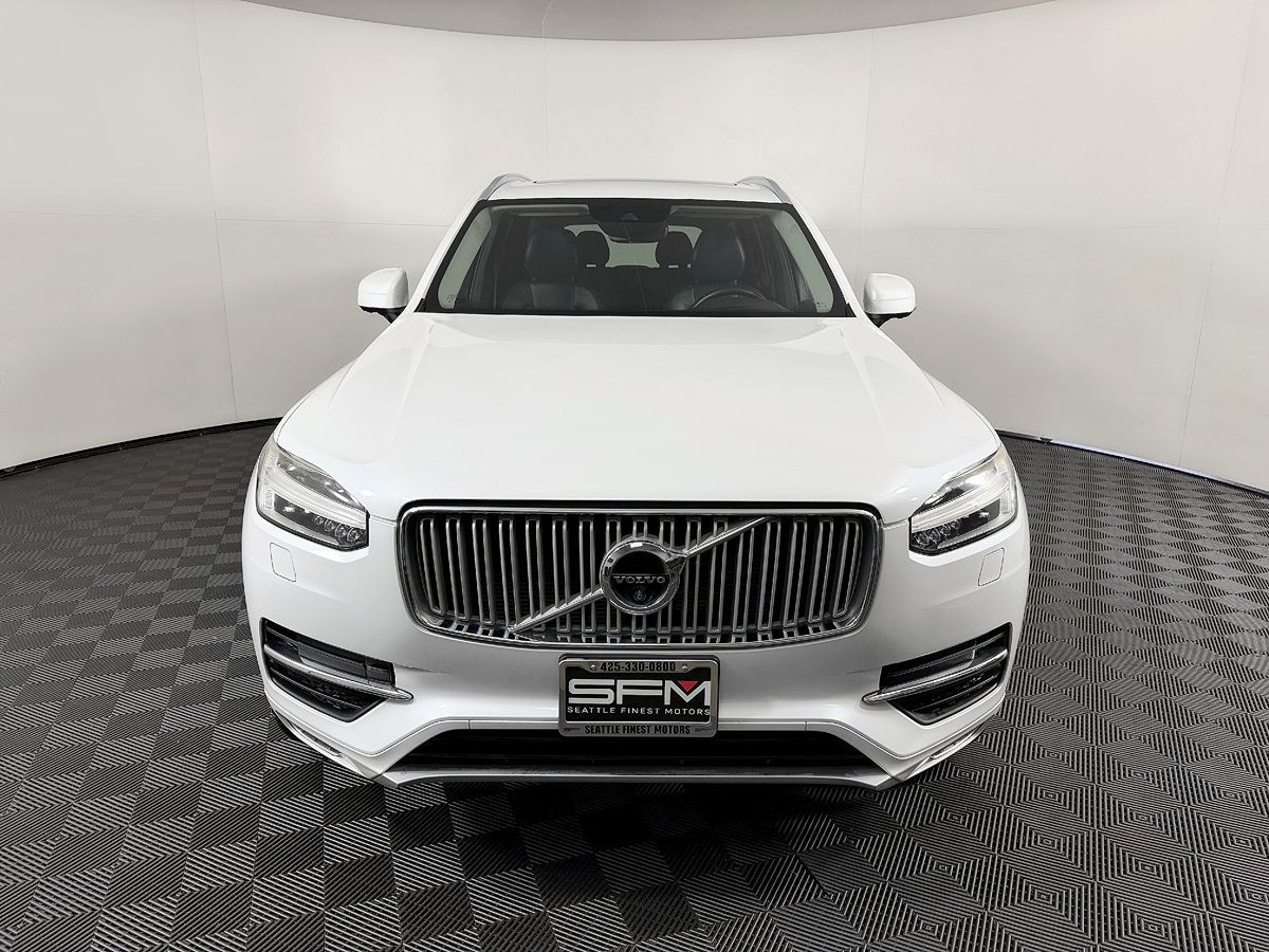 The 2017 Volvo XC90 T6 AWD 7-Passenger Inscription presents an exceptional blend of luxury and performance wrapped in a sophisticated and elegant design. Sporting a pristine white exterior, this SUV commands attention with its sleek lines and refined silhouette, perfectly complemented by its signature Volvo grille and bold LED headlights. The tasteful black interior exudes an air of modern elegance, boasting quality craftsmanship with premium materials that envelop passengers in comfort. Under the hood, the XC90 is powered by a robust 2.0L 4-cylinder engine, which masterfully combines turbocharging and supercharging to deliver impressive power without compromising efficiency. This unique powertrain ensures a dynamic driving experience, offering swift acceleration and responsive handling courtesy of its all-wheel-drive system. Safety remains a key focus, with the XC90 featuring Volvo's renowned suite of advanced safety technologies designed to protect both driver and passengers on every journey. This luxury SUV doesn't just excel in safety and performance; it also prioritizes passenger comfort and versatility. With a spacious 7-passenger configuration, the XC90 provides ample room for everyone, with flexible seating options to accommodate various cargo demands. High-tech amenities and user-friendly infotainment systems ensure a pleasurable driving experience, making the 2017 Volvo XC90 T6 AWD 7-Passenger Inscription an excellent choice for families and adventurers alike.