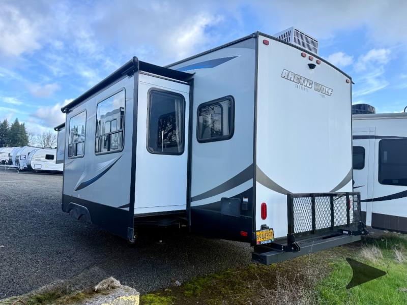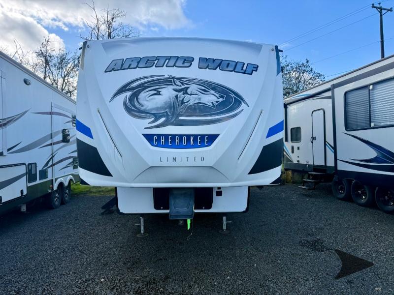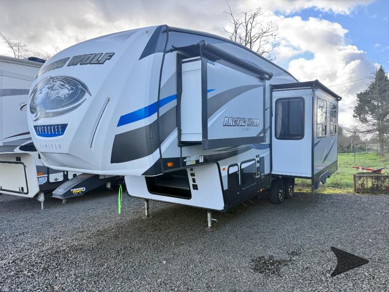 Forest River Cherokee Arctic Wolf 265DBH8 fifth wheel highlights: Bunk Beds, Private Master Suite, Outdoor Kitchen, Walk-In Kitchen Pantry, Sleeps Seven, Oversized Panoramic Windows. This Arctic Wolf fifth wheel is a wonderful addition to any family getaway you may take because it gives you what you need where you need it. The bunk beds in the rear portion of this trailer provide a fun area for the kids to enjoy themselves while they play during the day or sleep at night, and the private master suite in the front allows you to have a restful escape from the chaos of the day. When you all gather together in the living area for a home-cooked dinner or an evening of board games, you will thoroughly enjoy the amount of space that the two slides provide, and the walk-in kitchen pantry will prove to be a huge asset for storing all of your favorite snacks and spices. From its automatic leveling system to its 6' 4" slides with oversized panoramic windows, this fifth wheel by Forest River provides luxurious conveniences at an entry level price point. This structure has been designed so that even light duty trucks can tow it, yet the interior portion is still packed full with high-class amenities that will enhance your traveling experience, like the high circulation ceiling fan that adds to the character and functionality of the living area. Not only will you be thoroughly impressed with this RV, but so will everyone else that sees it because RV Pro has awarded this Arctic Wolf their "Best of Show" title.