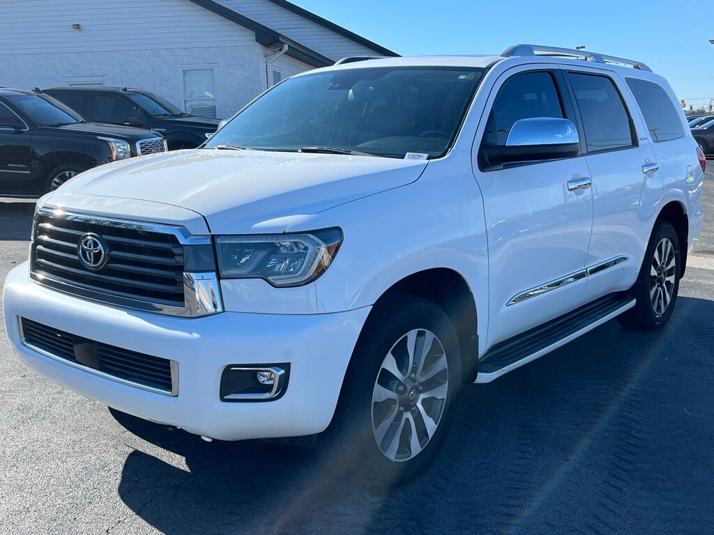Recent Arrival! Check out all these great options Sequoia Limited, 4D Sport Utility, i-Force 5.7L V8 DOHC VVT-i, 6-Speed Automatic Electronic, RWD, White, Sand Beige Leather, 20" x 8" Alloy Wheels, 3rd row seats: split-bench, 4-Wheel Disc Brakes, 4.30 Axle Ratio, 8 Speakers, ABS brakes, Air Conditioning, Alloy wheels, AM/FM radio: SiriusXM, Auto High-beam Headlights, Auto-dimming door mirrors, Automatic temperature control, Blind spot sensor: Blind Spot Monitor (BSM) warning, Brake assist, Bumpers: body-color, CD player, Compass, Delay-off headlights, Distance pacing cruise control: Dynamic Radar Cruise Control, Driver door bin, Driver vanity mirror, Dual front impact airbags, Dual front side impact airbags, Electronic Stability Control, Exterior Parking Camera Rear, Four wheel independent suspension, Front anti-roll bar, Front Bucket Seats, Front Center Armrest, Front dual zone A/C, Front fog lights, Front Heated Bucket Seats, Front reading lights, Fully automatic headlights, Headlight cleaning, Heated door mirrors, Heated front seats, Illuminated entry, Knee airbag, Leather Seat Trim, Leather Shift Knob, Leather steering wheel, Low tire pressure warning, Navigation System, Occupant sensing airbag, Outside temperature display, Overhead airbag, Overhead console, Panic alarm, Passenger door bin, Passenger vanity mirror, Power door mirrors, Power driver seat, Power Liftgate, Power moonroof, Power passenger seat, Power steering, Power windows.