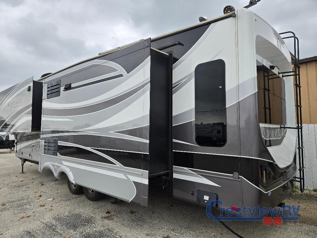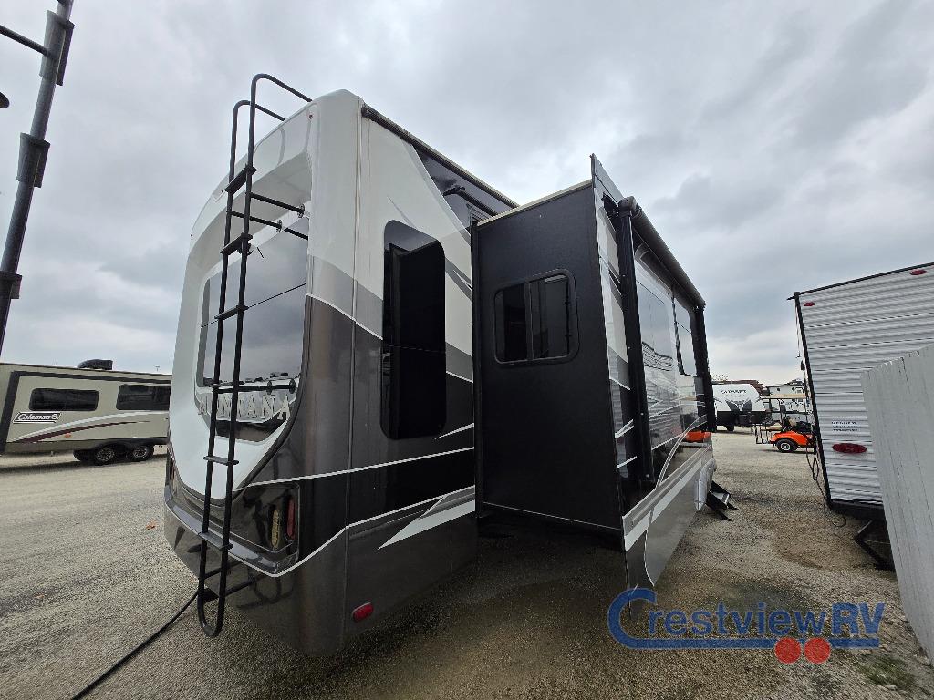 Keystone Montana fifth wheel 3720RL highlights. Just imagine a wide open living and kitchen area thanks to the dual opposing slide outs. You are sure to enjoy the theatre seats with power recliners and additional furniture when watching the HDTV and keeping warm from the fireplace. The cook can prepare meals and the guests can wash the dishes on the kitchen island. There is an 18 cu. ft. RV refrigerator and pantry to keep all your food stowed away, plus a convection microwave and three burner range to make a warm meal. The master bedroom includes a slide out that stretches into the hallway giving you more space to add a washer and dryer if you like that option. You also have dual entry into the bath as an added convenience especially at night. When packing for your next trip in a Keystone Montana luxury fifth wheel you will appreciate the enormous drop frame pass-through storage compartment, the full extension drawer guides, the MORyde "Step Above" entry steps with strut assist, and the LED motion sensor light at the inside steps. The Residential Living package adds more upgraded features such as the motion sensor LED light in the bedroom closet, the easy sweep vinyl flooring, the exclusive KeyTV satellite prep, and the in-floor straight line heat duct system. The Four Season Living package provides features such insulated in-floor water lines, two attic vents for cross-ventilation, insulated and heated holding tanks and dump valves, and more so you can travel any season you like. It's time to find the luxury fifth wheel you can enjoy for years to come, choose a Montana by Keystone today!