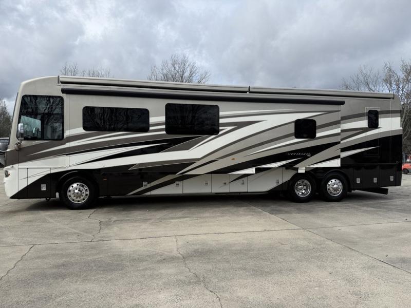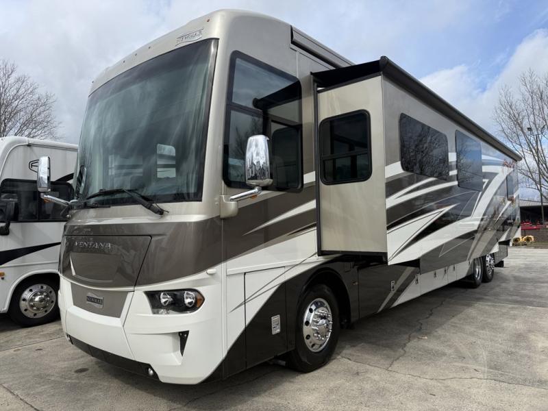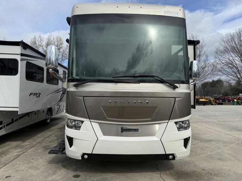 Newmar Ventana Class A diesel motorhome 4369 highlights: Full and Half Bath, Master Suite, Two Sofas, Emergency Exit, Two Samsung LED 4K TVs, Girard Power Awning. You will feel right at home with this Ventana Class A diesel motorhome with the full rear bathroom featuring a dual-sink vanity, a wardrobe with doors, a linen closet, another wardrobe prepped for the optional washer and dryer, and an emergency exit door with a fold-down ladder for your safety. Just outside the private bedroom is the half bathroom for everyone to use. The pantry is big enough to store everyone's favorite snacks, and they can each find a place to relax in the living area with the 87" hide-a-bed sofa with two ottomans to rest your feet on after a fun-filled day and the 74" jackknife sofa too. The kitchen is every chef's dream while traveling with a Suburban Elite Series three-burner gas cooktop, a Norcold 10-cu. ft. refrigerator, a stainless steel microwave, and a pull-out cabinet. There is also a hide-a-leaf dinette to enjoy your meals at or play a few rounds of go fish! Travel with confidence in a Newmar Ventana Class A diesel motorhome that is filled with luxurious features and puts safety first! From the convex exterior mirrors with a remote control, turn signal indicators, and defrost to the digital instrument panel with side-view cameras and numerous optional upgrades, like the Rand McNally navigation system, you will be impressed. Speaking of options, you can choose your motorhome to be built on the optional Spartan chassis or keep it with the Freightliner chassis, and it also comes standard with their industry-exclusive full-paint Masterpiece finish for you to stand out on the road. Ventana is dedicated to making your journey as easy as possible with entertainment features, flexible furniture configurations, fine dining with a well-appointed Ventana kitchen, and a personal hideaway with several bathroom arrangements. Whether you want to spend a long day by the water or a road trip to visit family, there is a model for you!