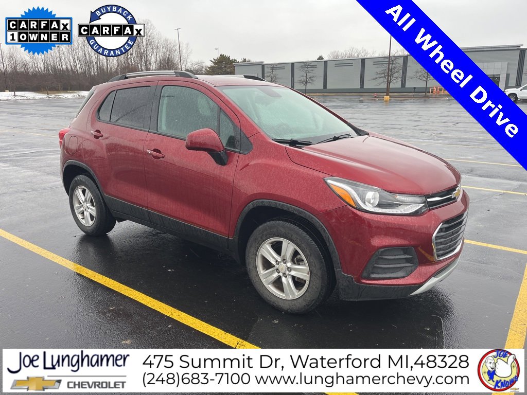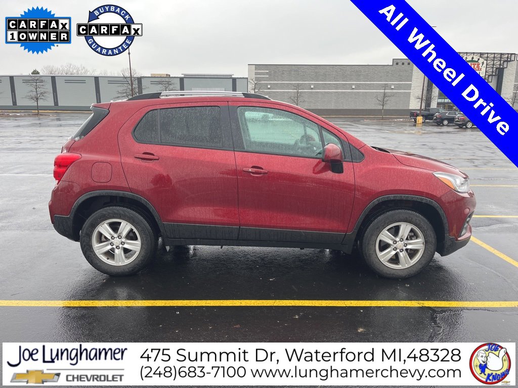 Clean CARFAX. CARFAX One-Owner. Recent Arrival! Odometer is 12477 miles below market average! 23/30 City/Highway MPG. Crimson Metallic 2022 Chevrolet Trax LT AWD 6-Speed Automatic Turbo 1.4L VVT DOHC 4-Cylinder DI SIDI. Joe knows used cars and has been family-owned and proudly serving Oakland County and surrounding communities since 1954. Our mission is simple: deliver exceptional customer service and a total ownership experience that feels effortless. Whether you’re shopping for a new or pre-owned vehicle, our team is committed to finding the right fit for your lifestyle and the right financing for your budget. And when it comes to maintaining your vehicle, Joe Knows service never fits neatly into a busy schedule. That’s why we offer convenient service hours Monday-Friday, 8am-5pm. Our service department features highly trained advisors, factory-certified technicians, and state-of-the-art equipment ensuring your vehicle is repaired right the first time at a fair price. That’s how we’ve earned customer loyalty for more than 70 years. We invite you to visit our dealership, explore our large selection of new and used vehicles, and meet our knowledgeable sales and service teams. At Joe Lunghamer Chevrolet, we’re here to serve you.