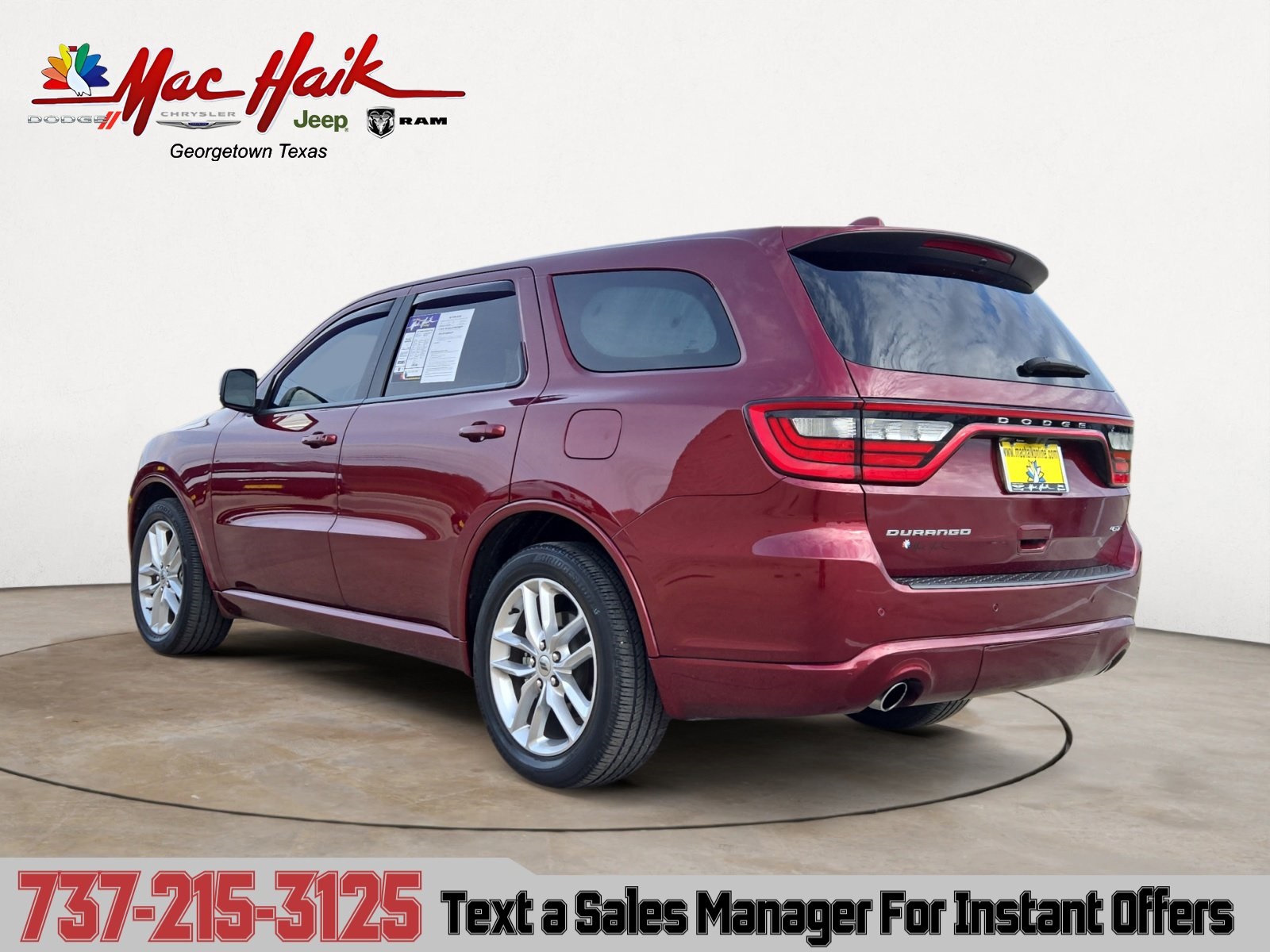 Octane Red Pearlcoat 2022 Dodge Durango GT Plus RWD 8-Speed Automatic 3.6L V6 24V VVT. Odometer is 6697 miles below market average! 19/26 City/Highway MPG. Mac Haik Dodge is conveniently located close to Austin, Georgetown, Round Rock, Pflugerville, Hutto, Taylor, Temple, Belton, Fort Hood, and surrounding areas.