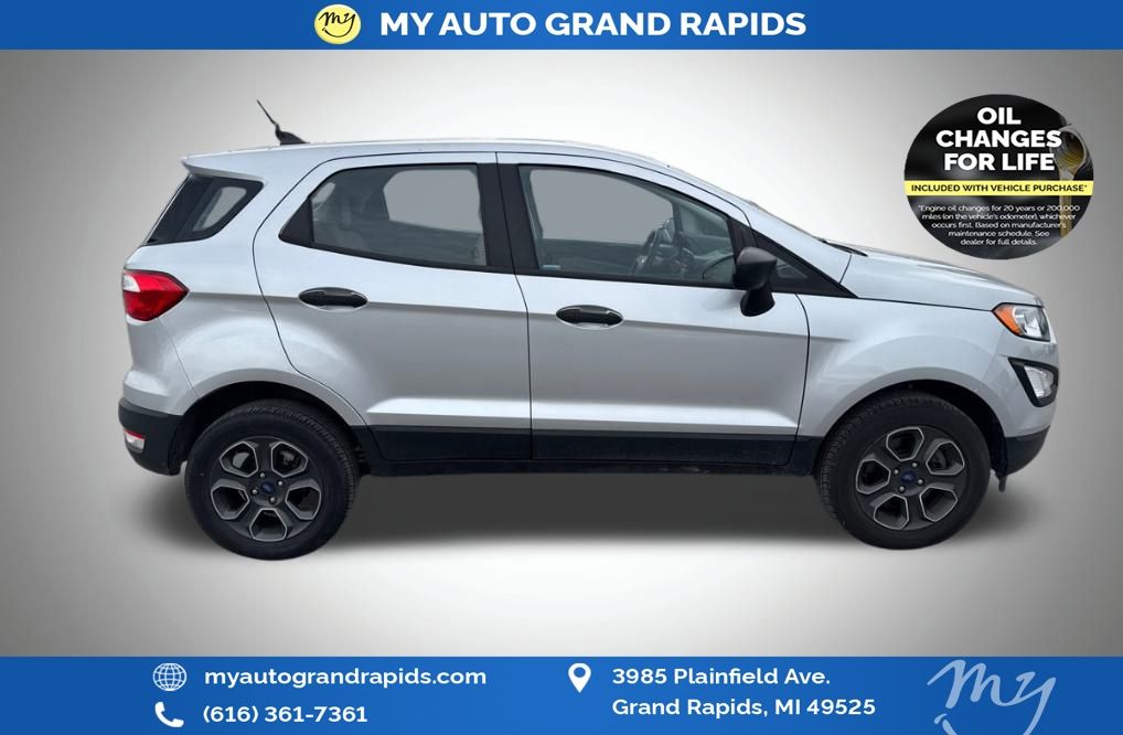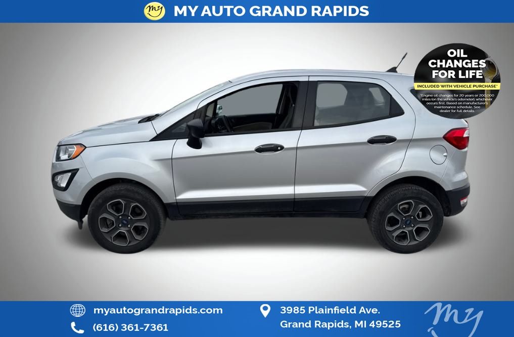 My Auto Grand Rapids is your #1 choice in Michigan to get the BEST PRICE on used vehicles and BEST value for your trade. The My Auto Grand Rapids team is ready to provide you with a world-class experience, ensuring that you find the perfect vehicle that fits all your needs. Every vehicle has been through a full safety inspection, completed by certified technicians and fully detailed. We sell many makes and models with years from 2025, 2024, 2023, 2022, 2021, 2020, 2019, 2018, 2017, 2016, 2015, 2014, 2013, 2012, 2011, 2010, 2009 and used makes Audi, BMW, Chevrolet, Toyota, Volkswagen, Kia, Hyundai, Mercedes, Dodge, Chrysler, Jeep, Ram, Lincoln, Ford, Nissan, Honda, Mitsubishi, Subaru, and many models like Altima, Murano, Pathfinder, Kicks, Taos, Beetle, Jetta, Outlander, Eclipse Sport, Frontier, Rogue, Atlas, Versa, and more. Take advantage of our VIP experience by calling 616-361-7361 to schedule a test drive. Read our customer reviews and view our entire selection of preowned vehicles at www.myautograndrapids.com, or stop by today, located at 3985 Plainfield Ave NE, Grand Rapids, MI 49525. Recent Arrival! Moondust Silver Metallic 2022 Ford EcoSport S 2.0L I4 Ti-VCT GDI 4WD. My Auto Grand Rapids is proud to service customer's saving you time & money on any pre-owned vehicle! See dealer for complete details, dealer is not responsible for pricing errors, all prices, plus tax, title, plate, and doc fees. Serving Grand Rapids and all of our surrounding cities like Grandville, Rockford, Byron Center, Kentwood, Norton Shores, Greenville, East Grand Rapids, Holland, Ada, Northview, Jenison, Lansing, Kalamazoo, Walker, Comstock Park, Grand Haven, Holland, Wyoming, North Muskegon, Fruitport, Hudsonville, Spring Lake, Coopersville, Cedar Springs, Wayland, Battle Creek, Allendale, and anywhere in the great state of Michigan. When you purchase a vehicle from us, new or used, that is less than 10 years old and has less than 100,000 miles, and you automatically get Oil Changes For Life! Check for a vehicle's unrepaired recalls by VIN at http://vinrcl.safercar.gov/vin/. 23/29 City/Highway MPG