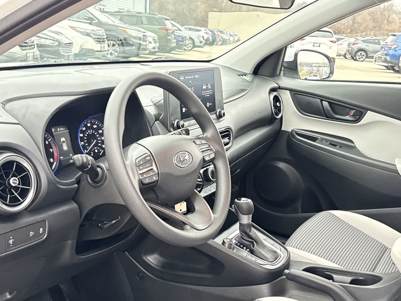 Recent Arrival! 2022 Hyundai Kona SE. Not responsible for typographical errors. Dealer Doc Fee $180. Odometer is 17326 miles below market average! 30/35 City/Highway MPG. Kona SE is nicely equipped with Option Group 01, 4-Wheel Disc Brakes, 5.715 Axle Ratio, 6 Speakers, ABS brakes, Air Conditioning, Alloy wheels, AM/FM radio, Apple CarPlay & Android Auto, Brake assist, Bumpers: body-color, Cargo Net, Carpeted Floor Mats, Cloth Seat Trim, Delay-off headlights, Driver door bin, Driver vanity mirror, Dual front impact airbags, Dual front side impact airbags, Electronic Stability Control, Exterior Parking Camera Rear, Front anti-roll bar, Front Bucket Seats, Front Center Armrest, Front reading lights, Front wheel independent suspension, Fully automatic headlights, Illuminated entry, Low tire pressure warning, Occupant sensing airbag, Overhead airbag, Overhead console, Panic alarm, Passenger door bin, Passenger vanity mirror, Power door mirrors, Power steering, Power windows, Radio: AM/FM Audio System, Rear seat center armrest, Rear window defroster, Rear window wiper, Remote keyless entry, Security system, Speed control, Speed-sensing steering, Split folding rear seat, Spoiler, Steering wheel mounted audio controls, Tachometer, Telescoping steering wheel, Tilt steering wheel.