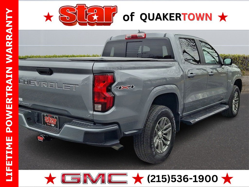 FREE Carfax report available, go to www.starofquakertown.com or call 215-536-1900, lifetime powertrain warranty, clean Carfax 1 owner, 4WD, automatic emergency braking, Chevy Safety Assist, driver & front passenger illuminated visors, dual-zone automatic air conditioning, electronic automatic cruise control, EZ-Lift & Lower Tailgate, following distance indicator, forward collision alert, front LED fog lamps, front pedestrian & bicyclist braking, IntelliBeam automatic high beam on/off, lane keep assist with lane departure warning, LT Convenience Package, manual rear-sliding window, Preferred Equipment Group 4LT, rear-window electric defogger, StowFlex tailgate storage compartment, tailgate keyed cylinder lock, tilt & telescoping steering column, wheels: 17 x 8 Argent Metallic Aluminum. 2023 Chevrolet Colorado Sterling Gray Metallic LT w/Turbo Plus 4WD 8-Speed Automatic 4D Crew Cab. New Years Sale! Trade in and trade up in 2026 with a quality preowned vehicle from Star that includes a lifetime warranty. Please contact sales at the dealership for more details.