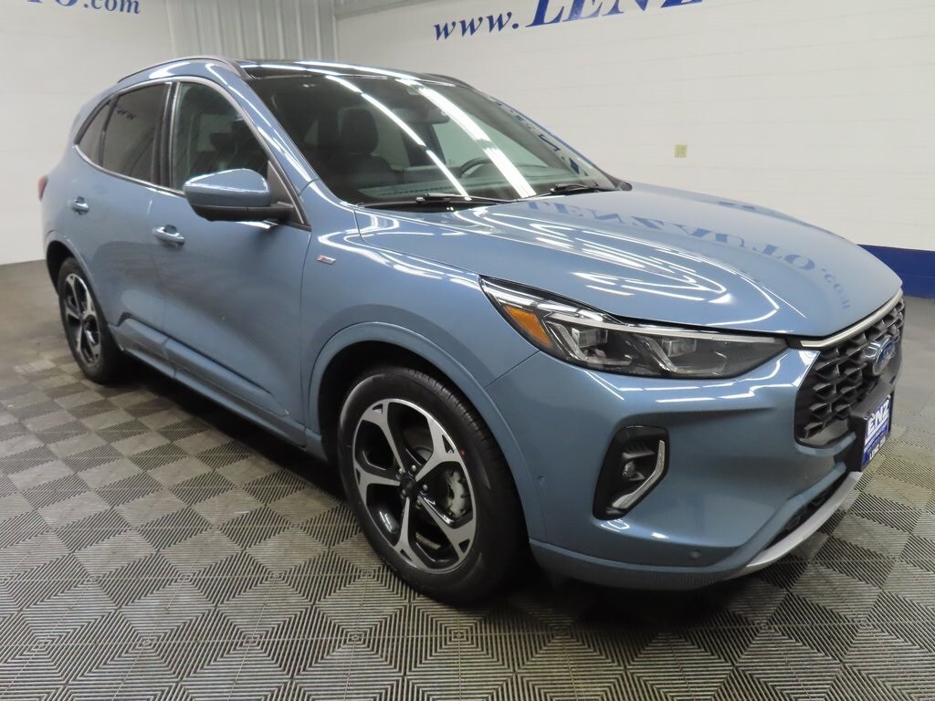 This 2023 Ford Escape Hybrid ST-Line Elite is finished in Vapor Blue Metallic and equipped with an all-wheel-drive drivetrain. Offered by Lenz Truck Center in Fond du Lac, this compact SUV has 37,179 miles and is powered by a 2.5L hybrid powertrain paired with a 10-speed automatic transmission, delivering efficient performance with confident all-weather capability.