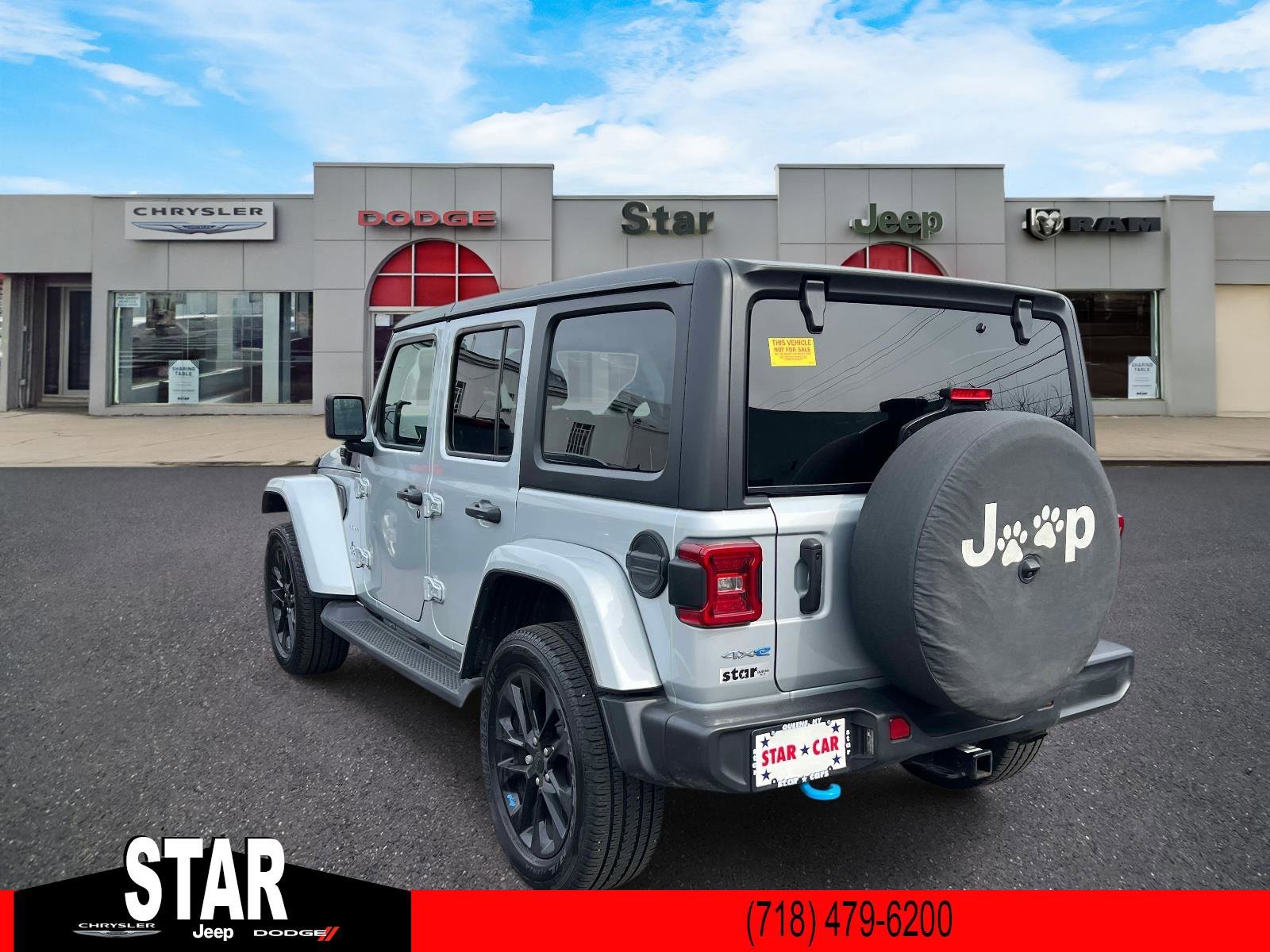 Carfax One-Owner. Silver Zynith Clearcoat 4D Sport Utility 2023 Jeep Wrangler Sahara 4xe 4WD 8-Speed Automatic 2.0L I4 DOHC Local Trade, Non-Smoker, Fully Serviced, STAR Certified, 2.0L I4 DOHC, 3.73 Rear Axle Ratio, 4-Wheel Disc Brakes, 9 Speakers, ABS brakes, Air Conditioning, Alloy wheels, AM/FM radio: SiriusXM, Apple CarPlay/Android Auto, Auto-dimming Rear-View mirror, Automatic temperature control, Black 3-Piece Hard Top, Brake assist, Cold Weather Group, Compass, Delay-off headlights, Driv... (more)