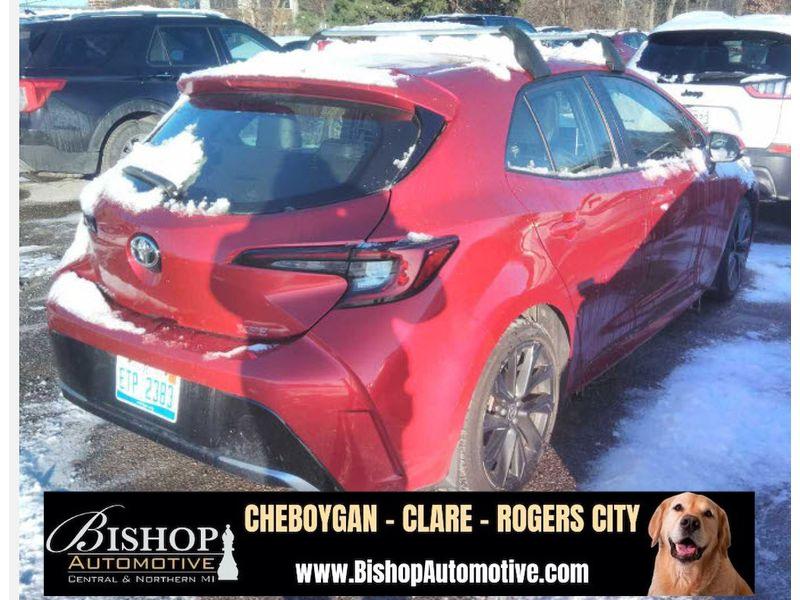 Find exceptional value with this pre-owned 2023 Toyota Corolla Hatchback XSE, now available in Cheboygan, MI. This sporty hatchback pairs a responsive 2.0L 4-cylinder gasoline engine with a smooth front-wheel drive for an engaging, fuel-efficient daily driver. With CARFAX 1-Owner history, you can buy with confidence knowing this Corolla has been well cared for. Equipped with premium features, this XSE trim includes Navigation to keep you on course, Hands Free Bluetooth for seamless city and connectivity, and a Back-Up Camera for easier parking and enhanced safety. Automatic Climate Control provides personalized comfort in any season. The hatchback layout offers flexible cargo space for weekend gear or daily errands. Whether commuting across town or exploring the country, this Toyota delivers reliable performance, sharp handling, and modern technology at the best price in the area. Competitive financing options and a clear vehicle history report make this an outstanding value for buyers seeking quality and peace of mind. Stop by in Cheboygan, MI to test drive this 2023 Toyota Corolla Hatchback XSE and see why it stands out among pre-owned compact cars. Don't miss the opportunity to own a well-equipped, single-owner Corolla at a price that can't be beat.