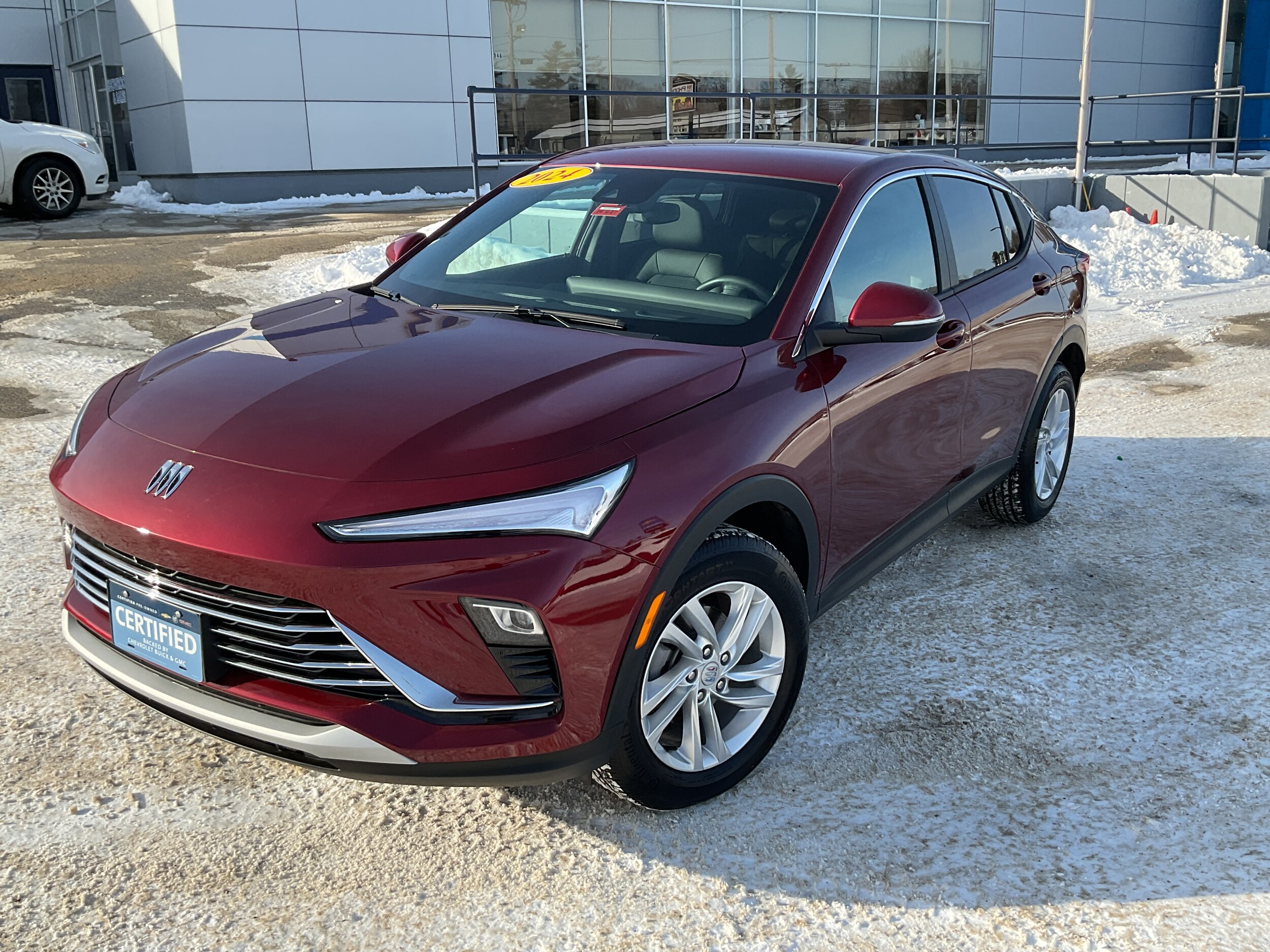 The 2024 Buick Envista Preferred is the ultimate "smart luxury" buy. It offers a premium look, a tech-heavy interior, and exceptional fuel economy—all backed by a factory warranty that takes the guesswork out of buying pre-owned. The Envista arrived as a total disruption to the compact crossover market, blending the sleek profile of a premium "coupe-SUV" with the accessible practicality of a hatchback. If you are looking for a vehicle that looks and feels like a luxury car but fits comfortably within a smart budget, this Envista Preferred is the perfect choice for the roads of Auburn and beyond. The Preferred trim is the foundation of this excellence. It features 17-inch bright silver-painted aluminum wheels and LED headlamps that pierce through the Maine night. Despite its sleek appearance, the Envista is built on a generous wheelbase that provides a surprisingly spacious interior, offering a comfortable ride for up to five passengers. Under the hood of this Envista is the 1.2L ECOTEC Turbo I3 engine. Don’t let the displacement fool you—this turbocharged engine was engineered to deliver power precisely when you need it. The interior of the 2024 Envista Preferred is a massive leap forward for the segment. Buick has moved away from cluttered buttons and toward a clean, digital-first environment that rivals much more expensive European brands. The Ultrawide Infotainment System is the centerpiece of the dash, providing a cockpit feel that is completely intuitive. Wireless Apple CarPlay and Android Auto mean you can leave the cords at home. Your navigation and music sync the moment you sit down. QuietTuning with Active Noise Cancellation ensures your cabin remains a sanctuary even on the highway. The Preferred trim features cloth seating with sophisticated leatherette trim. You’ll also find a performance-inspired flat-bottom steering wheel, which adds a sporty touch to the refined interior. With 38.7 inches of rear legroom, even tall adult passengers will find the back seat a comfortable place to be.