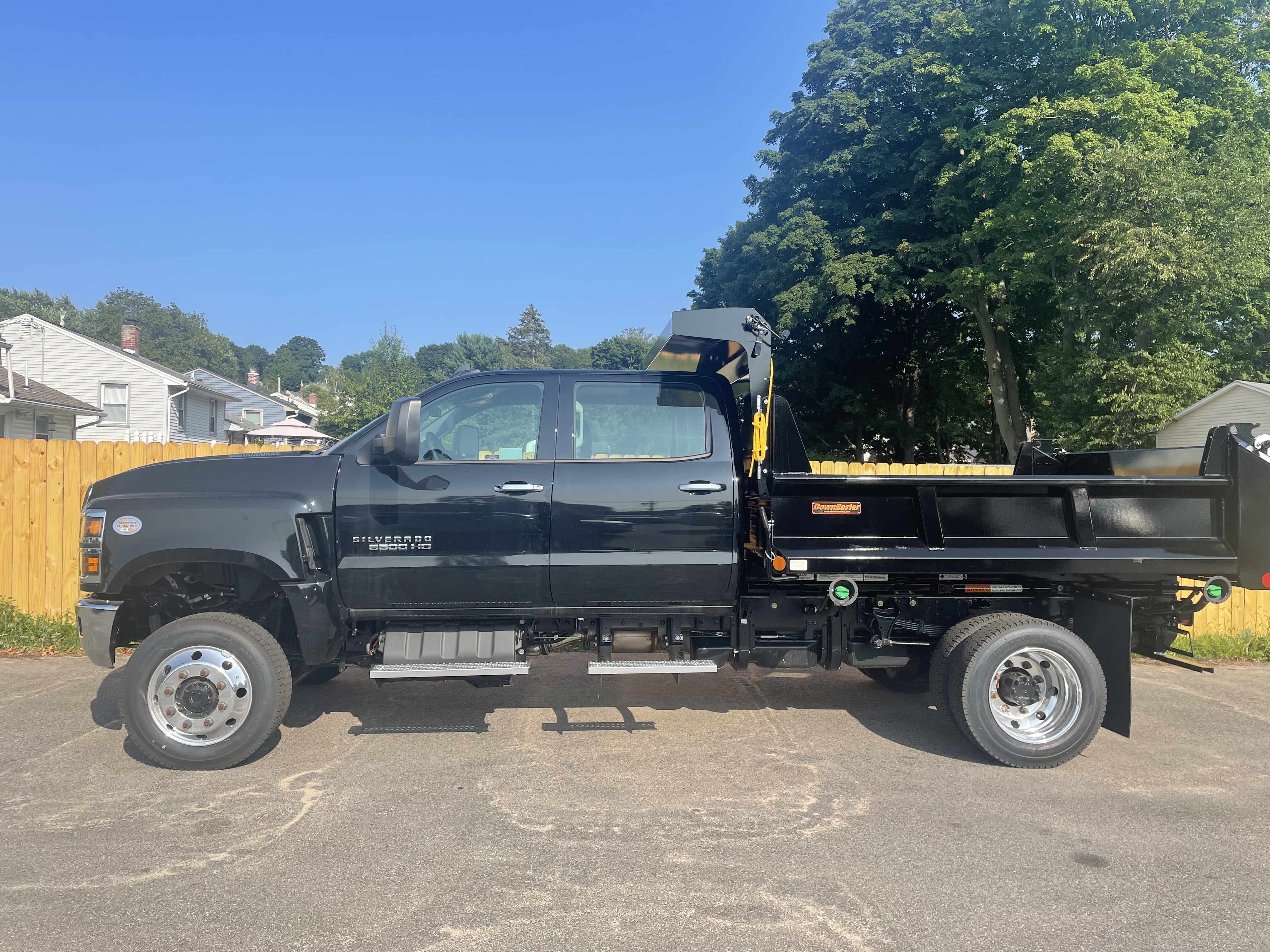 IN STOCK Stock # 24306 22 Miles. 2024 Chevy Silverado 5500HD Crew Cab. 4WD, 19,500 GVWR, 6.6L Duramax, 65 gallon dual fuel tanks, Snowplow prep, aluminum wheels and assist steps, 102" exterior mirrors and more. Upfit with a 9ft Down Easter steel dump body, electric hydraulic hoist, Hitch plate with plug and a Buyers 18X18X36 diamond plate aluminum tool box curbside. Price includes commercial retail incentive of a $11,500 rebate. Or you may take advantage of the 0% financing for up to 72 months available this month from GM.