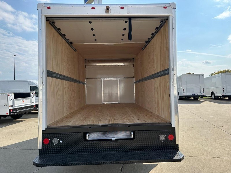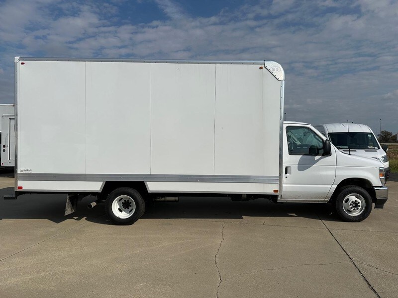 E-350SD Oxford White 7.3L V8 RWD 6-Speed Automatic with Overdrive Cutaway. Body Type - Box Van. Body Line - Sheet and Post. Body Model - Sheet & Post 16' x 7'. Body Material - Aluminum. Body Length -16'. Body Inside Height - 84". Bulkhead Description - 1/2” FRP Solid Bulkhead Wall. Door Description - Composite Roll Up Door. Door Location - Rear. Floor Description - 2" x 6" Shiplap Dense Southern Yellow Pine Floor. Floor Material - Pine. Lighting Description - Interior Dome Light with Switch. Lighting Location - Interior. Lighting Description - ICC Running Lights & Reflectors. Lighting Location - Exterior. Mud Flaps Description - Rear Mud Flaps. Roof Type - Solid. Roof Description - .032" Exterior Roof Aluminum | Galvanized Roof Bows on 16” Centers. Rub Rail Description - .130" Aluminum Protective Rubrail. Side Description - .043" Buck Riveted Exterior Aluminum Sidewall | 3/8" Plywood Interior Sidewall Liner.