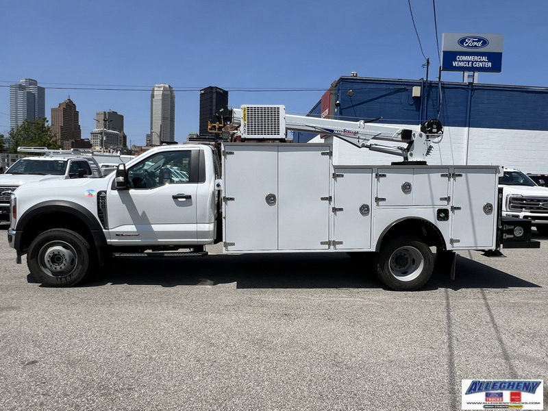 2024 Ford F600 Super Duty XL 4x4 Mechanics Truck. Additional Payload Capacity! 13' JOMAC Aluminum Mechanics Body with Stellar 7630 H Crane - 30' / 7,500# Capacity, Palfinger PRC45V Compressor, C-Tech Tool & Bolt Drawers (to be installed), Work Bench Dual Step Bumper, Wilton Vice (to be installed), Air Hose Reel, Flush Floor Tie-Downs, Spray-in Bedliner, Strobe Kit, LED Work Lights, LED Interior Cabinet Lights, Headache Rack, Master Locking System, Receiver Hitch, Trailer Plug. 6.7L Powerstroke Diesel V8, 10-Speed Automatic, 4.30 Limited Slip Axle. Snow Plow Prep Package, Low Deflection Package, Transfer Case Skidplates, Front Wheel Well Liners, 350 AMP Dual Alternators, Dual Batteries, 120V/400W Outlet, Manual Regen. A/C, Cruise, Tilt, AM/FM/MP3/Aux Input, Bluetooth, WiFi Hotspot, Interior Work Surface, Power Windows/Locks/Mirrors, Remote Keyless Entry, Remote Start, Platform Running Boards, Fog Lamps, Chrome Front Bumper & Grille, Rear View Camera, Exterior Backup Alarm.