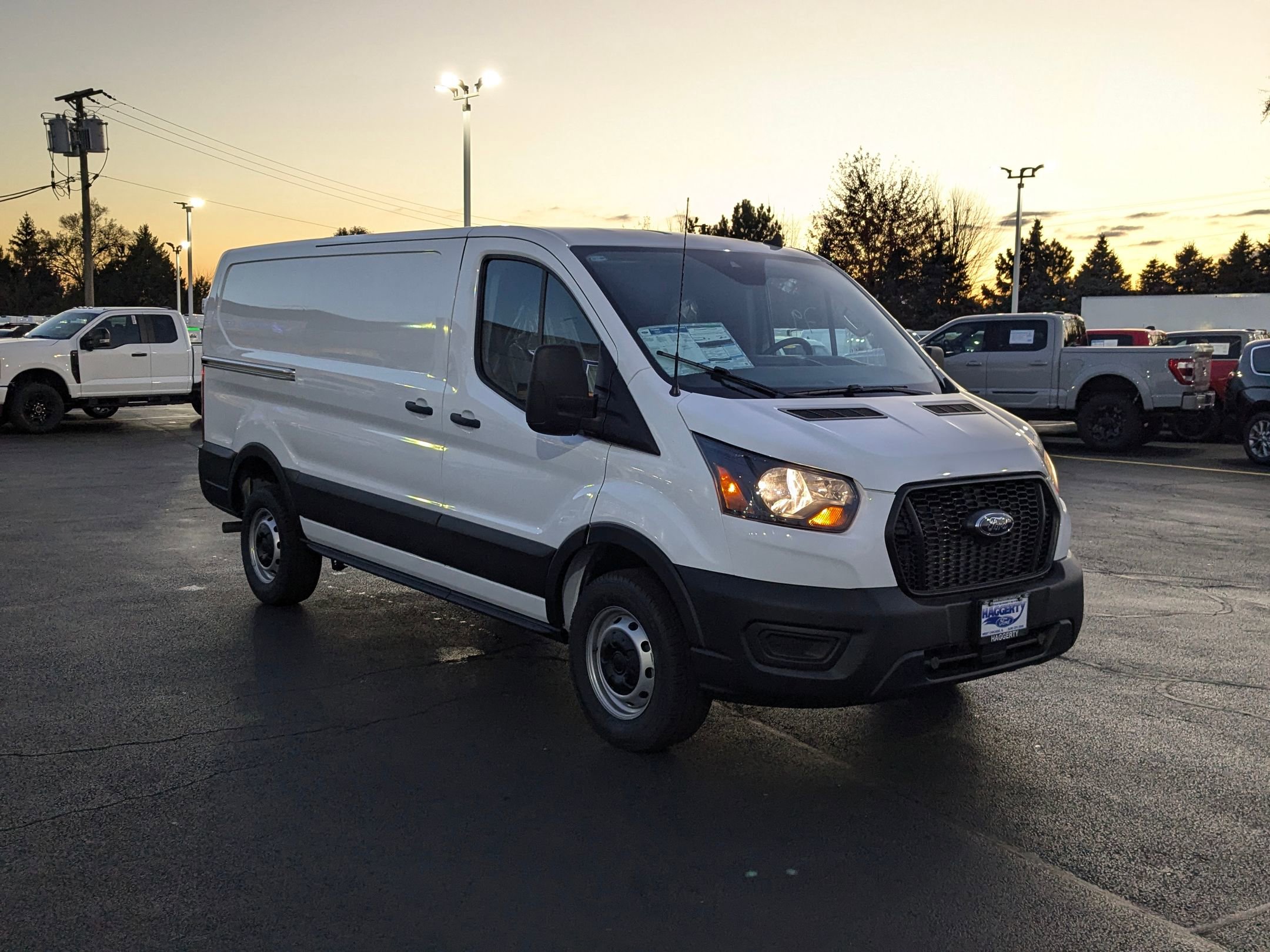 For Value and Integrity, it has to be Haggerty! Recent Arrival! Odometer is 15056 miles below market average! Oxford White 2024 Ford Transit-250 Base 3.5L V6 Flex Fuel RWD Clean CARFAX. Clean CARFAX, one owner, 2 additional keys (4 total), 3.73 axle ratio, 4 speakers, 4-wheel disc brakes, ABS brakes, air conditioning, auto high-beam headlights, brake assist, dark Palazzo Gray vinyl bucket seats, dual front impact airbags, dual front side impact airbags, electronic stability control, exterior parking camera rear, frame mounted hitch receiver, front anti-roll bar, front bucket seats, front wheel independent suspension, fully automatic headlights, heavy-duty trailer tow package, low tire pressure warning, occupant sensing airbag, order code 101A, overhead airbag, panic alarm, passenger cancellable airbag, power door mirrors, power windows, radio: AM/FM stereo w/SYNC 3, remote keyless entry, reverse sensing system, short-arm manual-folding power adjust mirrors, speed control, steering wheel mounted audio controls, telescoping steering wheel, tilt steering wheel, tow/haul mode w/Trailering Wiring Provisions, traction control, trailer brake controller (TBC), variably intermittent wipers, wheels: 16" silver steel w/black hubcap. Serving the communities of West Chicago, Winfield, Wheaton, Naperville, St. Charles, Batavia, Geneva, Aurora, Carol Stream, Downers Grove, Glendale Heights, Warrenville, and North Aurora.