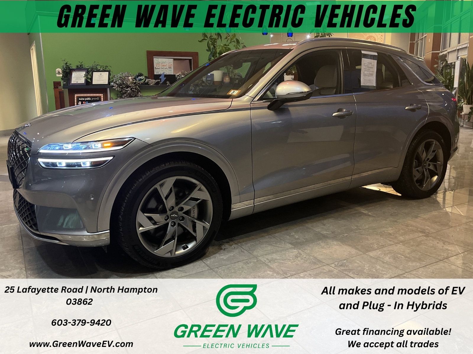 Save money, save the planet, and love the car you drive with New England’s #1 Rated EV Dealer - Green Wave Electric Vehicles. This vehicle has an expected 236 miles of range, according to the EPA range estimate. Check out the battery health report on this page for more info about range and charging. Green Wave is NH’s first dedicated electric vehicle dealership, and we specialize in helping people get fun and fossil-fuel-free vehicles at affordable prices. We have great financing options with rates as low as 4.89% for up to 66 months. We take all trades (even old gas guzzlers). We provide a 30 day/1000 mile warranty at no cost (additional warranty available for purchase). We plant 100 trees in your name when you buy from us. All prices listed do not include our $499 administrative fee, which covers title processing, document prep, level 1 charging cord, and other ancillary costs.