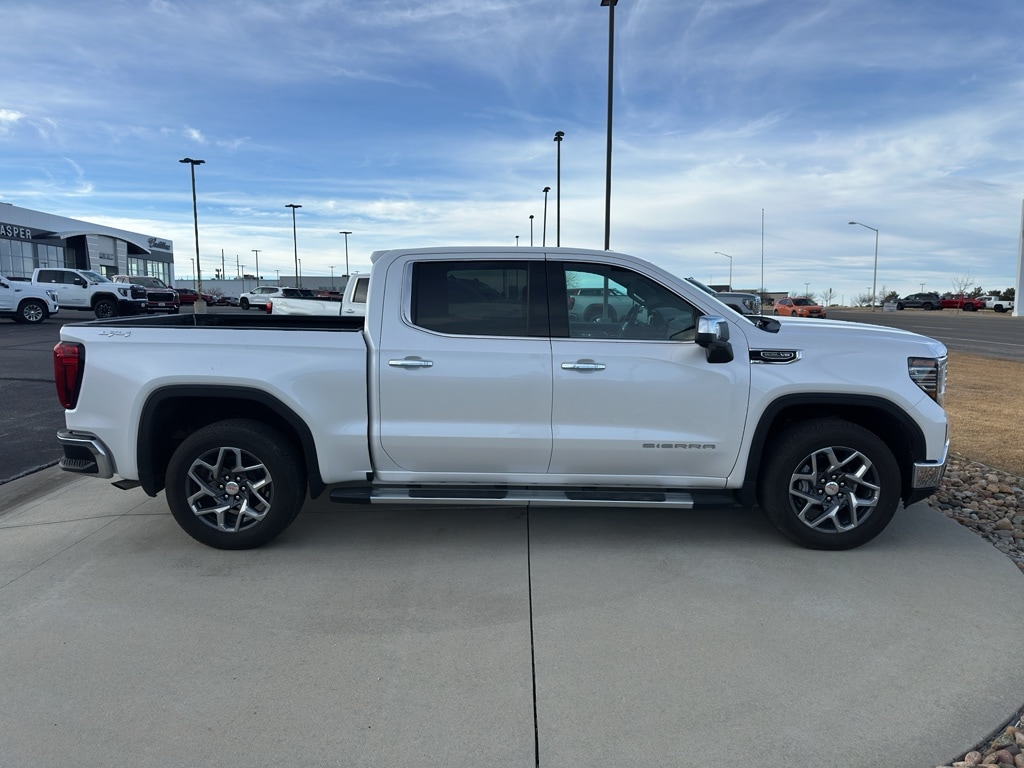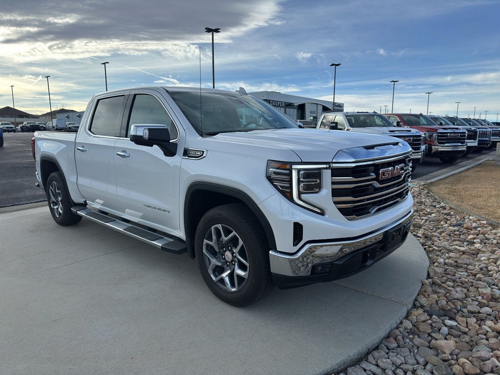 2024 GMC Sierra 1500 SLT 4WD, V8 5.3L, 7,517 miles located in Casper, WY. This rugged yet refined pickup pairs proven capability with upscale comfort, making it an exceptional value for buyers seeking performance and luxury. Powered by a V8 5.3L gasoline engine and equipped with four-wheel drive, the GMC Sierra 1500 SLT delivers confident towing and off-road capability while remaining smooth on the highway. Low mileage (7,517 miles) and meticulous care keep this GMC Sierra in near-new condition. Inside, premium leather seats create a comfortable cabin complemented by intuitive features: built-in navigation guides every route, automatic climate control maintains ideal comfort, and adaptive cruise control adds convenience and safety for long drives. Entertainment comes courtesy of XM Radio for endless listening options. This 2024 GMC Sierra 1500 SLT is competitively priced the best price available in the area giving you top-tier capability and features without the premium cost. Whether you need a capable work truck or a polished daily driver, this model balances utility with refinement. Located in Casper, WY, it's ready for immediate delivery and local test drives. Contact us to schedule a showing, confirm availability, or arrange a test drive to experience the performance, comfort, and value this low-mileage GMC Sierra offers.