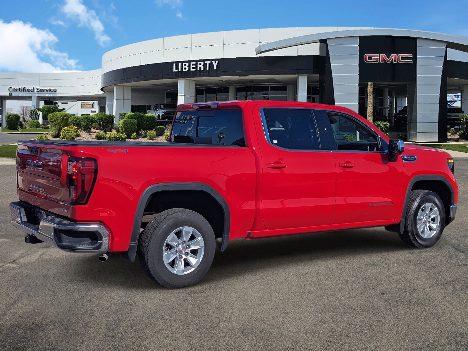This vehicle is Cardinal Red, a 2024 GMC Sierra 1500 SLE. Odometer is 17986 miles below market average. The vehicle features a 5.3 EcoTec3 V8 engine and features a full set of advanced safety and technology features.