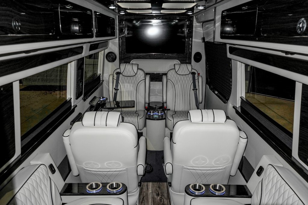 2026 Mercedes-Benz Midwest Automotive Designs LUXE CRUISER LUXE CRUISER / 2024 Mercedes-Benz Sprinter 3500 170 WB EXT High Roof High Roof RWDFLOOR PLAN:D6 Full Capacity/Length: 10 Passengers, 3500 170EXT, Length: 24'2DESCRIPTION: Front Full Partition, 6 Captains Chairs with 44 Opposing Bench Seats, Rear Bath.CHASSIS: Mercedes-Benz SprinterDRIVETRAIN: Rear-Wheel-DriveEXTERIOR COLOR: Obsidian Black MetallicWHEELS: All Season Tires & Aluminum RimsSUSPENSION: Standard Mercedes SuspensionAERO KIT: Rear Facia, Side Skirts, & Front SpoilerWALLS & CEILING: Stone (Light Grey)WAINSCOTS: Stone (Light Grey)WOOD: Black DenaliWOOD FINISH: High Gloss FinishCOUNTERTOP: BlackFLOORING: Seat Designs: New Azure (Waterfall)SEAT OPERATION: Heat & MassageSEAT COLOR: Stone (Light Grey)SEAT INSERTS: Matching (Matches Seat Color)PIPING & STITCH: Contrast (Matches Wood)POWER: 200Ah LithiumSOUND: Alpine Status w/ Front Alpine Cabin SpeakersCONNECTIVITY: Cellular Internet Router & Apple TVADDITIONAL OPTIONS: 4 Camera Viewing SystemStandard FeaturesSoft Touch Automotive Fabric ThroughoutLuxury Custom SeatingDouble Needle Stitched AccentsCustom Handmade Woodwork ThroughoutComposite Wood Grain FlooringOverhead Side Storage CabinetsMaybach Lighted Ceiling PanelPower Leg LiftsFolding Lap TablesNew Insulation Package (35% Enhancement)Engine Driven Rear HVAC System2,000W Sine Wave Inverter & Charger200Ah Lithium Coach BatteryAll-In-One Exterior Utility Bay w/ MaceratorExterior ShowerPorcelain Toilet w/ Black TankStainless Steel Sink and Faucet w/ Grey TankCompressor Driven RefrigeratorMicrowaveNew Color Matched Ground Effects AerokitAll-Season Tires & Aluminum WheelsFirefly Touchscreen Control SystemFront Overhead 32 Samsung Smart HDTVRear 19 HDTV in Bath DoorNew Alpine Audio SystemOutside EnteStandard FeaturesSoft Touch Automotive Fabric ThroughoutLuxury Custom SeatingDouble Needle Stitched AccentsCustom Handmade Woodwork ThroughoutComposite Wood Grain FlooringOverhead Side Storage CabinetsMaybach Lighted Ceiling PanelPower Leg LiftsFolding Lap TablesNew Insulation Package (35% Enhancement)Engine Driven Rear HVAC System2,000W Sine Wave Inverter & Charger200Ah Lithium Coach BatteryAll-In-One Exterior Utility Bay w/ MaceratorExterior ShowerPorcelain Toilet w/ Black TankStainless Steel Sink and Faucet w/ Grey TankCompressor Driven RefrigeratorMicrowaveNew Color Matched Ground Effects AerokitAll-Season Tires & Aluminum WheelsFirefly Touchscreen Control SystemFront Overhead 32 Samsung Smart HDTVRear 19 HDTV in Bath DoorNew Alpine Audio Systemrtainment Package $743Pedestal Table Between Chairs $743