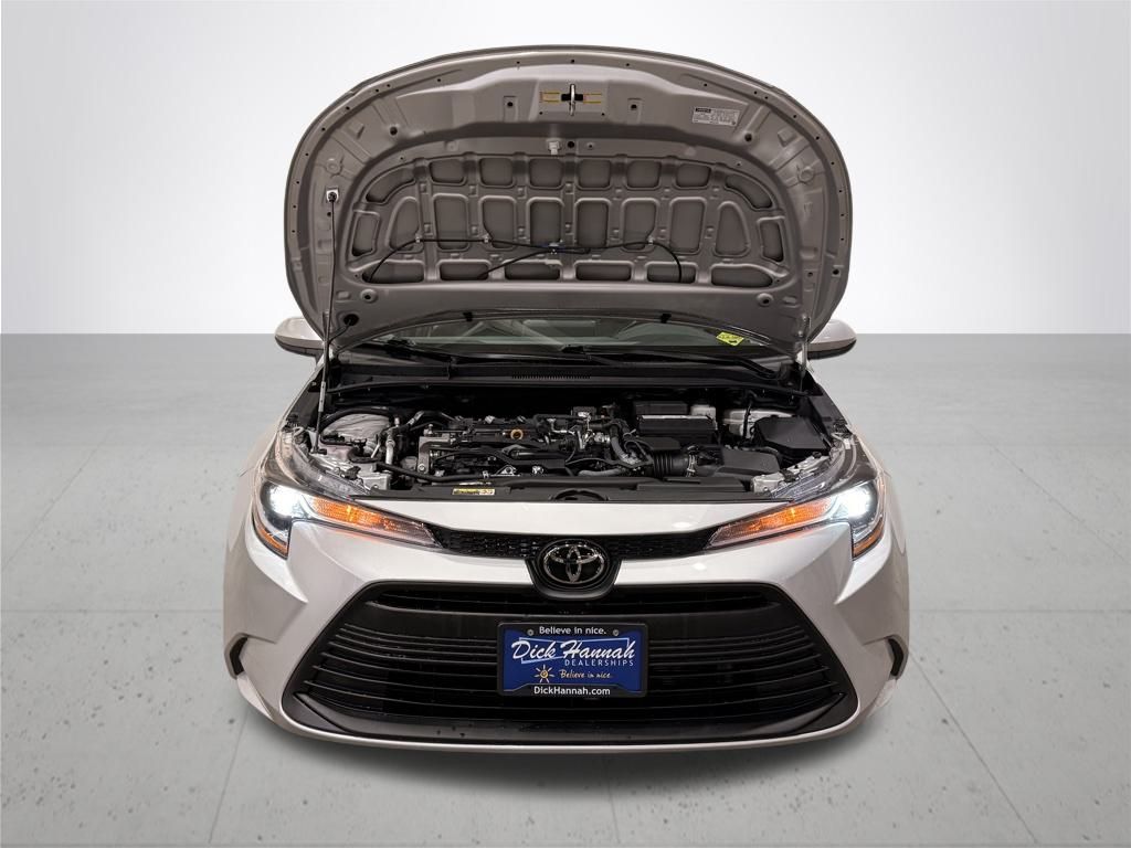 Silver 2024 Toyota Corolla LE FWD CVT 2.0L I4 DOHC 16V. Clean Carfax One Owner, Lane Departure Alert, LED Headlamps, Backup Camera, Bluetooth Wireless Audio, Dynamic Cruise Control. 32/41 City/Highway MPG. Peace of mind warranty: Rest easy - you're covered for 12 months or 12,000 miles on many of your vehicle maintenance items including Battery - Brake Pads - Belts & Hoses - Wiper Blades. In addition, each Dick Hannah used vehicle comes with a powerful 3 month/3,000 mile power train warranty which covers: Engine - Transmission – Drivetrain. You can breathe easy knowing that your unexpected repairs will be covered. See dealership for full warranty details.
