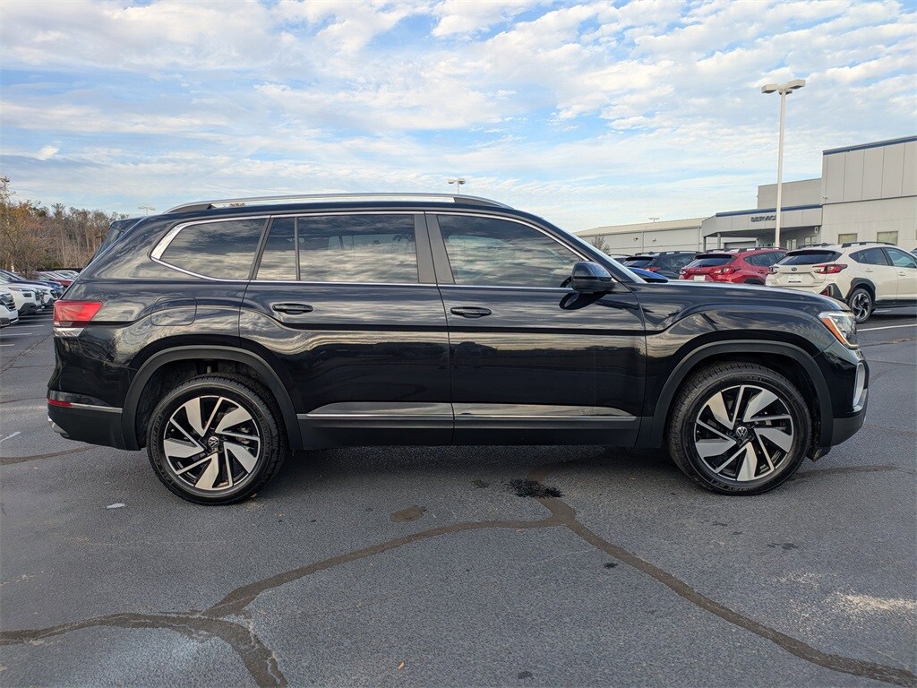 Recent Arrival! 2024 Volkswagen Atlas 2.0T SEL Clean Carfax, no accidents, one owner, Atlas 2.0T SEL, 2.0L TSI, Deep Black Pearl, Black Leather, 2nd-Row Dual Captain's Chairs, 3rd row seats: split-bench, 4-Wheel Disc Brakes, 6 Speakers, ABS brakes, Air Conditioning, AM/FM radio: SiriusXM with 360L, Auto High-beam Headlights, Automatic temperature control, Brake assist, Compass, Delay-off headlights, Driver door bin, Driver vanity mirror, Dual front impact airbags, Dual front side impact airbags, Electronic Stability Control, Emergency communication system: VW Car-Net Safe & Secure 5-year, First Aid Kit, Four wheel independent suspension, Front Bucket Seats, Front Center Armrest, Front dual zone A/C, Front fog lights, Front reading lights, Fully automatic headlights, Heads-Up Display, Heated front seats, Heated rear seats, Heated steering wheel, Heated/Actively Ventilated Front Bucket Seats, Heavy Duty Trunk Liner w/VW CarGo Blocks, Memory seat, Panic alarm, Passenger door bin, Perforated Vienna Leather Seating Surfaces, Power driver seat, Power Liftgate, Power moonroof: Panoramic, Power passenger seat, Power steering, Power windows, Privacy Cover, Radio data system, Radio: MIB3 Discover Media w/Navigation, Rain sensing wipers, Rear air conditioning, Rear window defroster, Rear window wiper, Remote keyless entry, Security system, Split folding rear seat, Steering wheel mounted audio controls, Turn signal indicator mirrors, Variably intermittent wipers, Ventilated front seats, VW Care, Wheels: 20" 2-Tone Machined Alloy.
