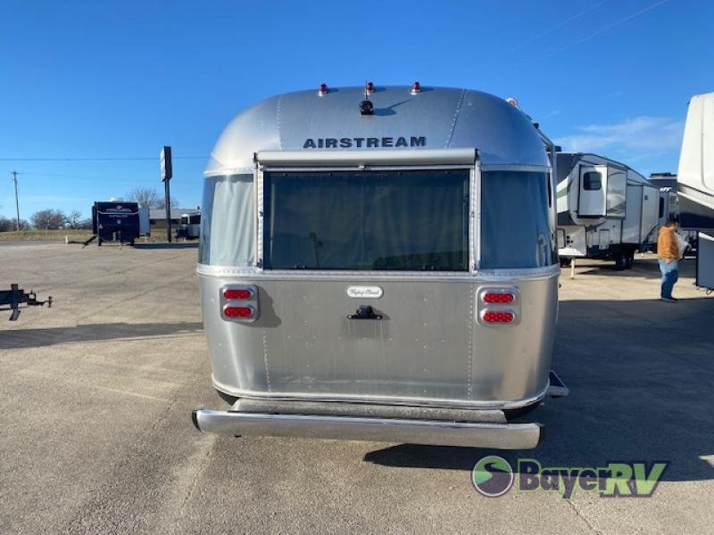Airstream Flying Cloud travel trailer 25FB Twin highlights: Conv. M/W oven, Window awning package, Solar + Lithium Battery, 2 A/C. Has a few small hail dents on top front panels and back top panels. Front Twin Beds, Rear Convertible Dinette, Split Bathroom, Panoramic Windows, Handcrafted Cabinetry. When you enjoy the finer things when traveling, this trailer will provide that for you plus lots of natural lighting and plenty of conveniences. The convertible rear dinette offers a place to dine and socialize for four, and there is a lounging area along the side with a TV on the wall. The table acts as a sturdy base below the cushions when you need some sleeping space. The front bedroom offers more panoramic windows and comfortable twin beds with a view each morning and night. There is floor space in the center and a nightstand for extra storage and charging space. You will find storage for your clothing, and a split bathroom with a half bath on one side and a shower that stands independently across the hall. And the kitchen offers everything you need to make meals including extra counter space and a refrigerator for leftovers. And there is a rear hatch option for this trailer. With each Flying Cloud travel trailer by Airstream, there are two axles, and each is built for ease of towing, plus there is a rear-view camera to make reversing and parking easier, and stainless steel front stone guards to protect the lower segments from road debris. The iconic Airstream design is created outside and inside by the semi-monocoque aluminum superstructure, the temperature reducing one-piece white aluminum roof, the panoramic front windows, and the stylish aluminum wheels. The interior will have you feeling right at home with handcrafted cabinetry, plenty of storage and counter space, sleek roller blinds and blackout curtains, plus residential style faucets!
