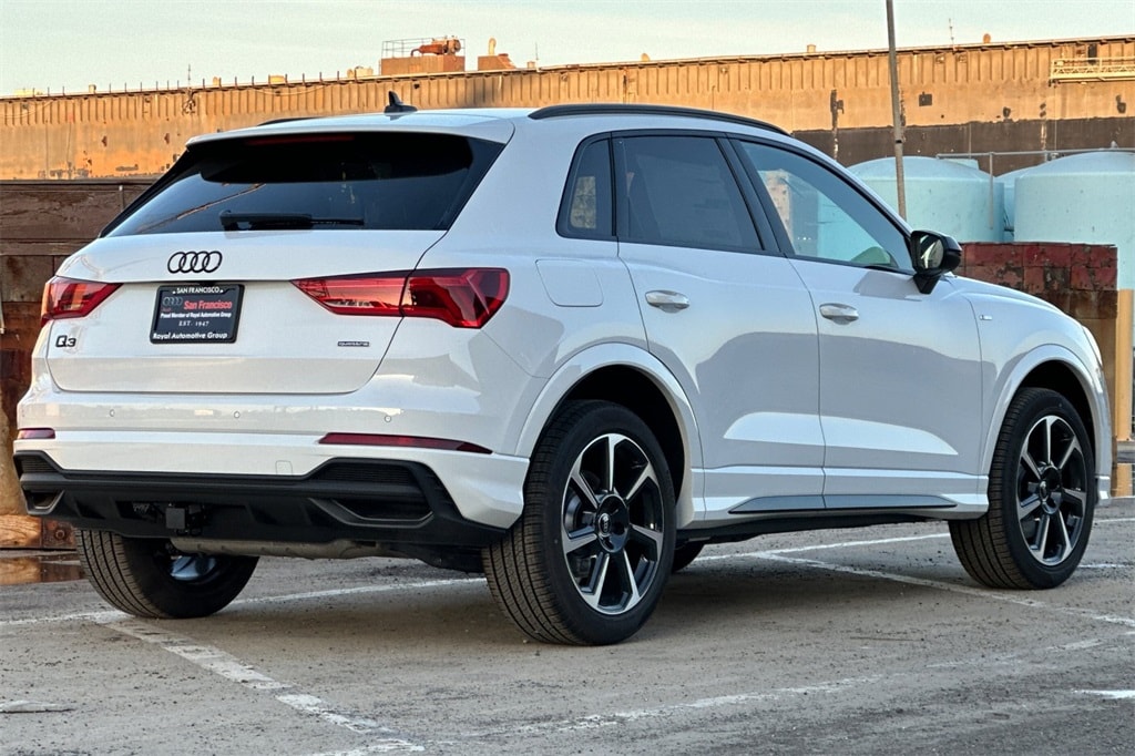 Glacier White 2025 Audi Q3 Premium Plus S Line quattro quattro 8-Speed Automatic with Tiptronic 2.0L 4-Cylinder TFSI. Recent Arrival! 20/28 City/Highway MPG. Peace of mind. Factory warranty. 48 months/50,000miles from the vehicle's original in-service date. Warranty details. A name you can trust. Royal Auto Group of San Francisco is dedicated to your satisfaction before, during, and after your purchase. We'll go the extra mile to take care of you.