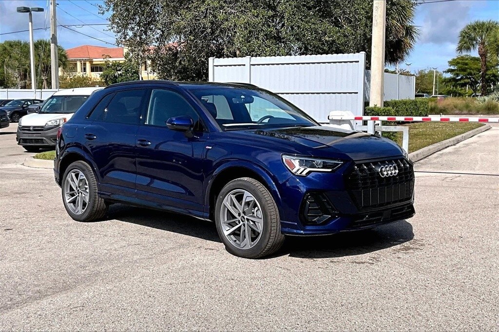Recent Arrival! Blue 2025 Audi Q3 S Line quattro 4D Sport Utility 2.0L 4-Cylinder TFSI 8-Speed Automatic with Tiptronic quattro 20/28 City/Highway MPG. Price includes $2500 Season of Audi Customer Credit. Exp. 01/05/2026.