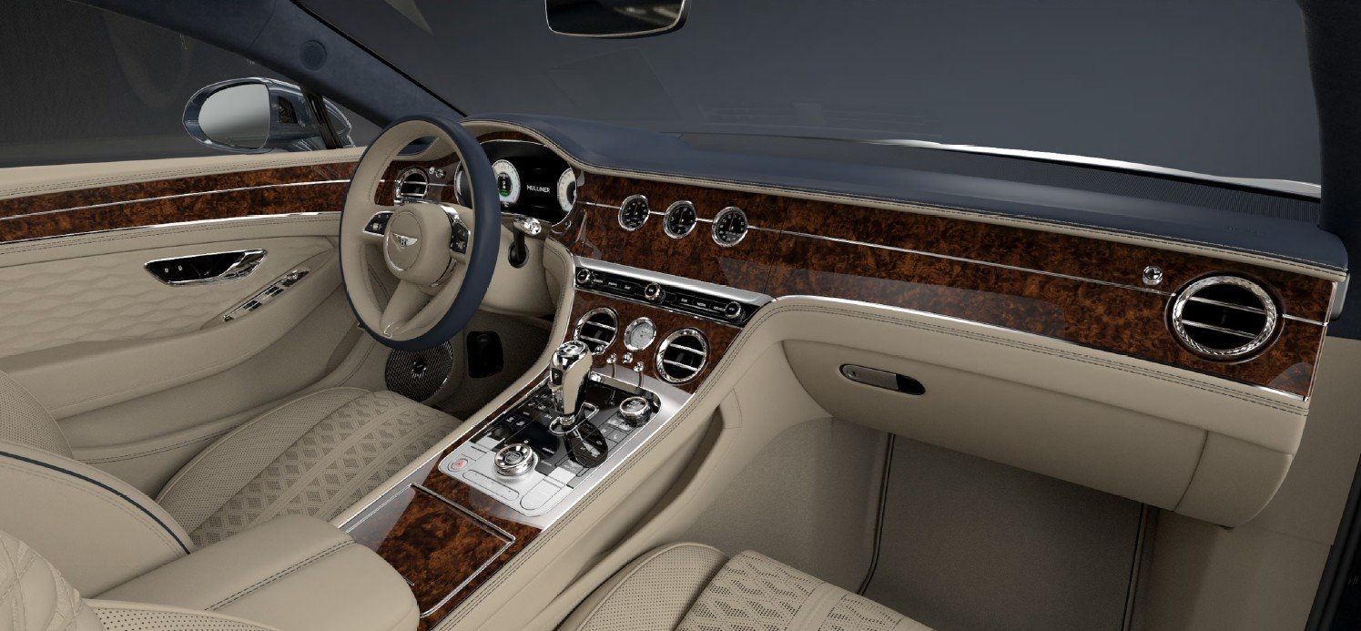 2025 Bentley Continental GT Mulliner Meteor Exterior Linen and Imperial Blue Interior $377,630 MSRP Includes the following Cost options: Animated Welcome Lamps - By Mulliner Front Seat Comfort Specification Continental Blackline Specification Panoramic Glass Roof Heated, Duo-Tone, 3 Spoke, Hide Trimmed Steering Wheel Front Wellness Seating Contrast Stitching and Seat Piping 22" Ten Swept Spoke Wheel - Black Painted Single Finish - Piano Linen - by Mulliner Contrast Seatbelts - by Mulliner Dark Chrome Interior Specification Leather Specification Mood Lighting Specification