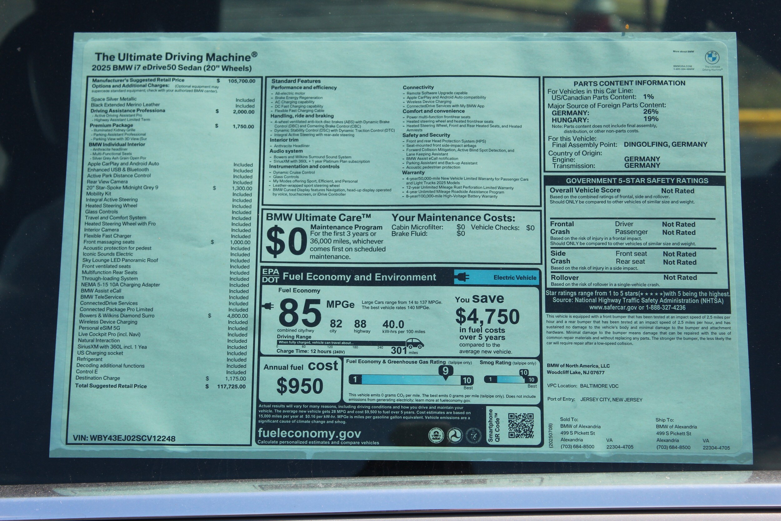 Space Silver Metallic 2025 BMW i7 eDrive50 RWD Single-Speed Automatic Electric Motor. Recent Arrival! Unless specifically indicated in the advertisement, MSRP does not include taxes, fees or other charges. Actual dealer pricing may vary. Consult your dealer for more information and complete details. Images and options shown are examples, only, and may not reflect exact vehicle color, trim, options, pricing or other specifications. The dealer advertised price may not reflect specific dealer offers, and may be subject to certain terms and conditions as indicated in the advertisement. Consult your dealer for more information and complete details. Browse BMW Models at BMW of Alexandria Serving Washington DC, Arlington VA and Springfield VA. Are you searching for a car, coupe, sedan or suv that can deliver unparalleled style and performance specifications? Is it essential for your vehicle to handle curves, give you exhilarating acceleration, and look good while outperforming others on the road in Alexandria VA? Our selection of BMW models are prepared to fit these needs while delivering memories by the dozen. Your new BMW X3, X5, X1, M440i or 330i could be here on our lot today, and a quick look at our inventory can provide you with insights on which paint color that suits your personality. Stylish is an understatement when referring to our selection of new BMW X3, X5, X1, M440i and 330i, and our team at BMW of Alexandria is prepared to show you what options we have available. The level of lavish materials, impressive power, and legendary handling these models offer is unspoken - our Washington DC, Arlington VA and Springfield VA customers know by instinct that these car, coupe, sedan and suv models have what it takes, and a test drive further cements that understanding. Come to BMW of Alexandria Near Washington DC, Arlington VA and Springfield VA to Test Drive a New BMW. With our online showroom of BMW models, you no longer need to take the short trip from Washington DC, Arlington VA and Springfield VA to see what exciting BMW models we have available. When you take advantage of our virtual showroom's intuitive interface, you can research the BMW models that suit you best with ease. Browse our online inventory and use the filters to search by car, coupe, sedan or suv to discover the diverse range of BMW vehicles. Then be sure to visit us for a test drive and to discover why DC-area drivers love to work with us.