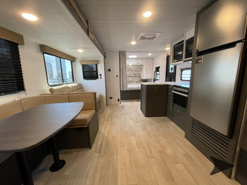 Keystone Bullet Classic travel trailer 2640BHWE highlights: Large Slide Out, Queen Bed, Patio Awning, Full Bath, Jack Knife Sofa. You can't go wrong with this travel trailer in tow! The double-size bunks feature a flip-up bunk for added storage, and they are right next to the full bath for easy nighttime use. You'll find the front semi-private bedroom to be accommodating with its queen bed and dual wardrobes to keep your things tidy. Head to the combined kitchen and living room to relax on the jack knife sofa or play a game around the U-shaped dinette, and these areas can even double as additional sleeping space if needed! The full kitchen includes a cooktop and microwave to make meals, plus an 8 cu.ft. refrigerator and pantry for food storage. And don't overlook the exterior with its patio awning, pull out step, and pass-thru storage! With any Bullet Classic travel trailer by Keystone, you can be sure to make memories at the campground! The durable construction means you can enjoy your RV for years to come, and the variety of floorplans let you pick the one that's just right for you! Each model includes full bath and kitchen amenities, convenient storage spaces, plus comfortable seating and sleeping arrangements. The hassle-free exterior features make camping easier than ever, so come check them out! Bish’s RV - Meridian, Idaho has a huge selection of Travel Trailers, Fifth Wheels, Pop Up Campers, Truck Camper’s, Toy Haulers, Class A Motorhomes, Class B Camper Vans, and Class C Motorhomes. All these RVs are priced to sell. Be sure to ask about our “Purchase with Confidence Guarantee” to ensure you are receiving the best RV buying experience in Meridian and surrounding areas like Boise, Nampa, & Caldwell. Affordable prices on all new and used RVs only at Bish’s RV of Meridian.