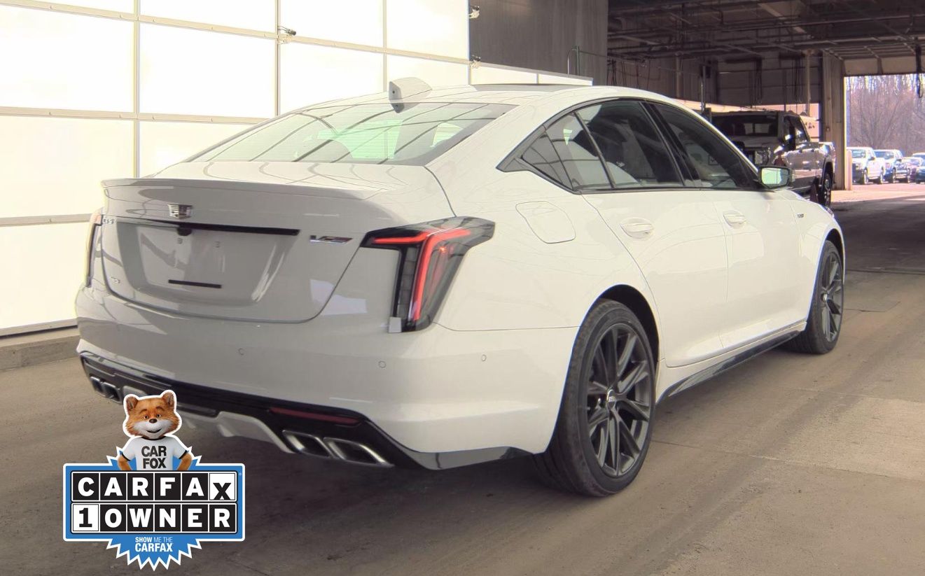 Recent Arrival! Carfax One-Owner. Clean Carfax. 2025 Cadillac CT5 V-Series 4D Sedan V-Series Summit White 3.0L V6 10-Speed Automatic RWD Interior Protection Package (LPO) (All-Weather Cargo Mat (LPO) and All-Weather Floor Mats), Preferred Equipment Group 1SF (Body-Color Heated Power-Adjustable Outside Mirrors, Inside Rear-View Auto-Dimming Mirror, and LED Reflective Windshield Collision Alert), Technology Package (Adaptive Forward Lighting Headlamps, Air Quality Indicator Sensor, Automatic Leveling System Headlamp Control, Body-Color Heated Power-Adjustable Outside Mirrors, Front Cornering LED Lamps, Hands-Free Decklid Release, Head-Up Display, Illuminating Door Handles, Illuminating Front Sill Plates, Pollutant/Odor/Fine Dust Air Filter, Premium Headlamp System, and Rear Camera Mirror), 15 Speakers, 3 Years SiriusXM, 4-Wheel Disc Brakes, 8-Way Power Driver Seat Adjuster, 8-Way Power Front Passenger Seat Adjuster, ABS brakes, Adaptive suspension, Air Conditioning, AKG Premium 15-Speaker System, Alloy Pedals, Alloy wheels, AM/FM radio: SiriusXM with 360L, Apple CarPlay/Android Auto, Auto High-beam Headlights, Auto-dimming door mirrors, Auto-dimming Rear-View mirror, Automatic Stop/Start w/Disable, Automatic temperature control, Black Mirror Caps (LPO), Blue Front & Rear Calipers, Brake assist, Bumpers: body-color, Compass, Delay-off headlights, Driver 4-Way Power Lumbar Seat Adjuster, Driver door bin, Driver Power Lumbar Massage Seat, Driver vanity mirror, Dual impact airbags.